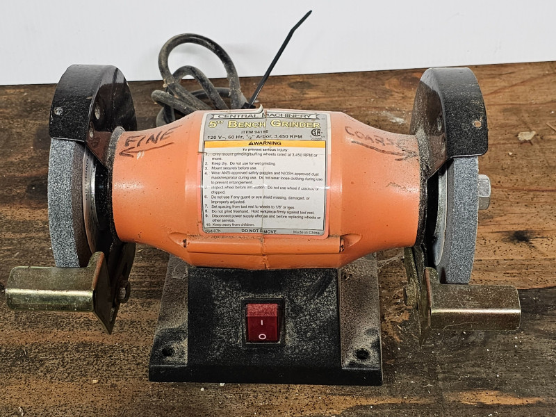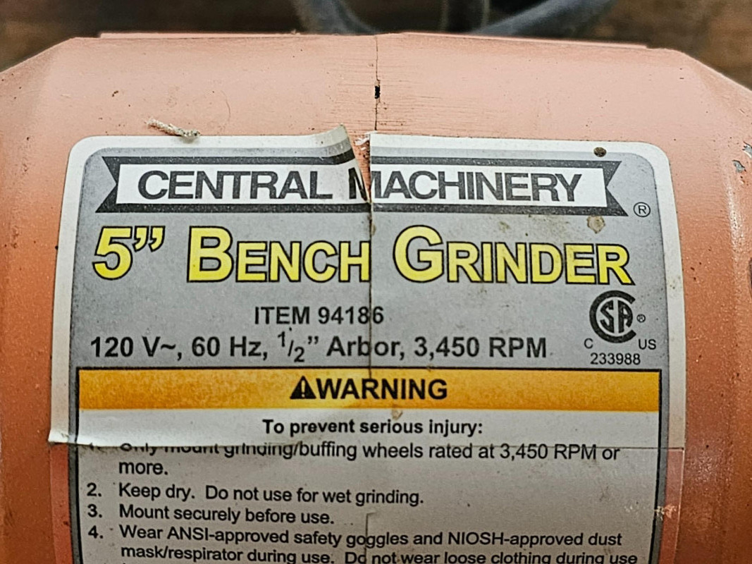Central Machinery 5" Bench Grinder Item #94186 1/2" Arbor 120V Tested - Works!