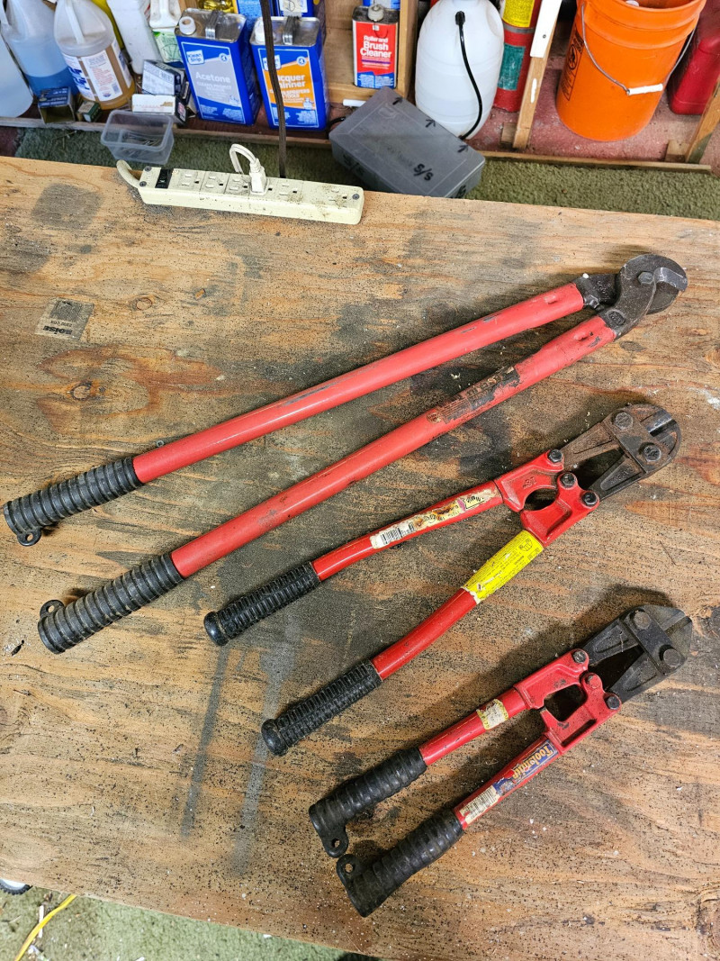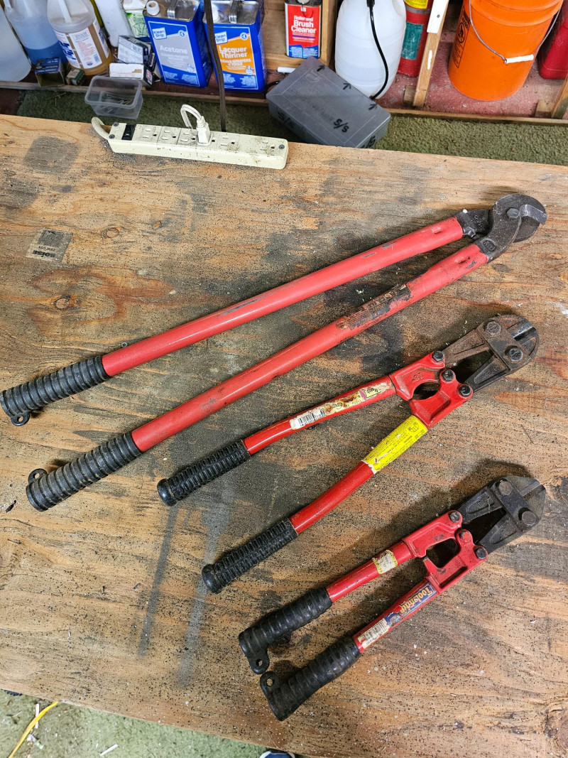 Cable Cutters & 2 Bolt Cutters (1) 27.5" high-leverage cable cutters (1) 18.5" bolt Cutters (1) 14" bolt cutters 3 Cutters in all!