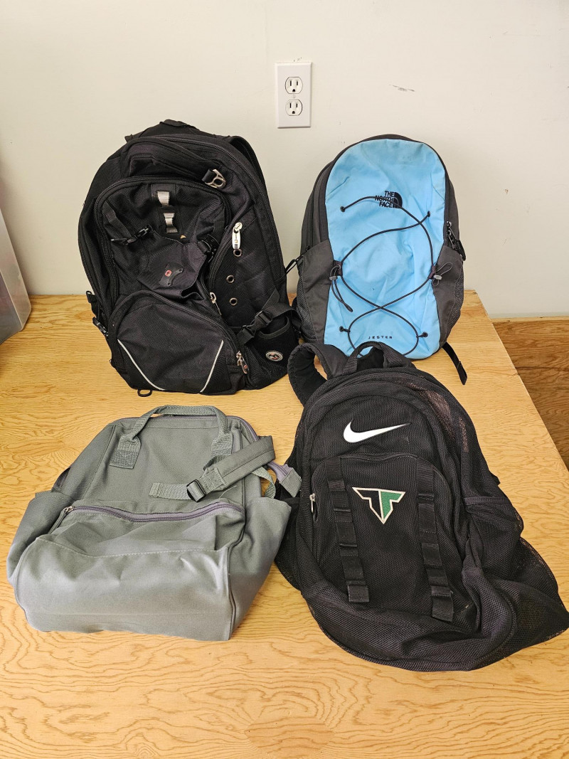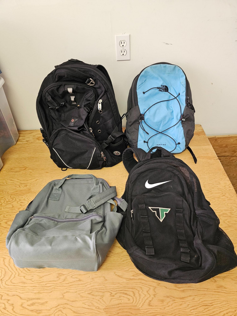 (4) Backpacks: Nike, North Face, Swiss Gear & DSW (1) Black Swiss Gear backpack (1) Light blue/black North Face Jester backpack (1) Grey DSW backpack (1) Black Nike backpack All 4 backpacks are in good used condition (see pics)
