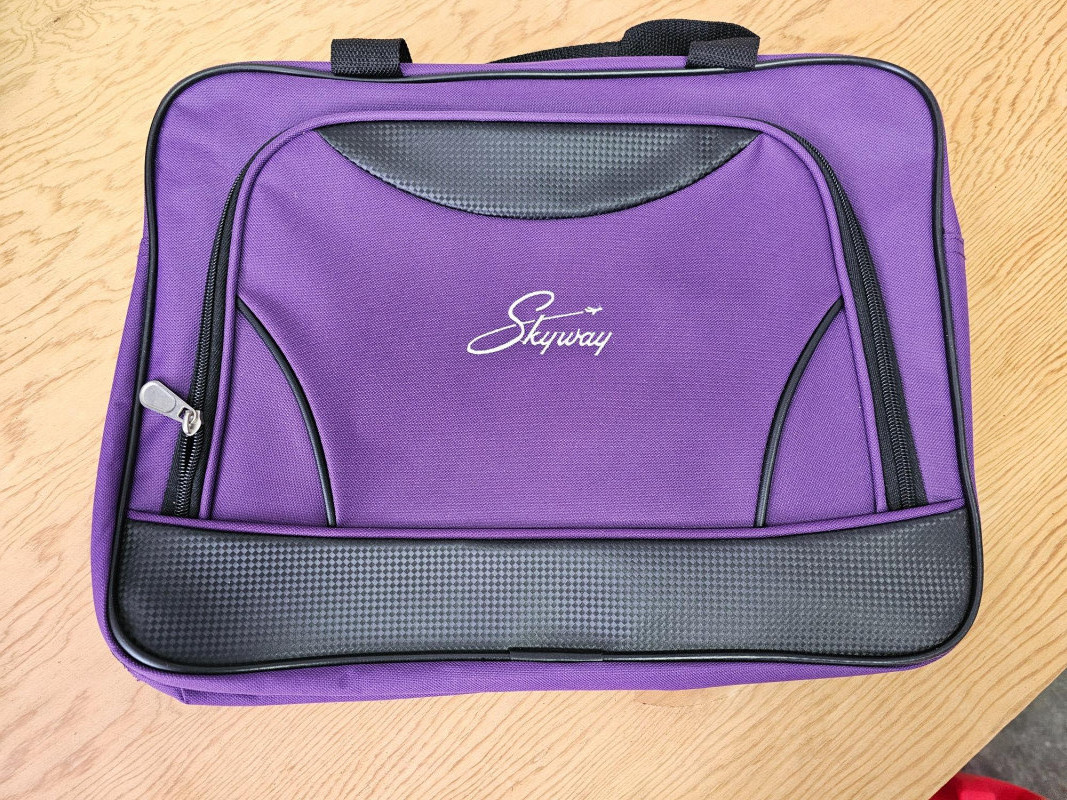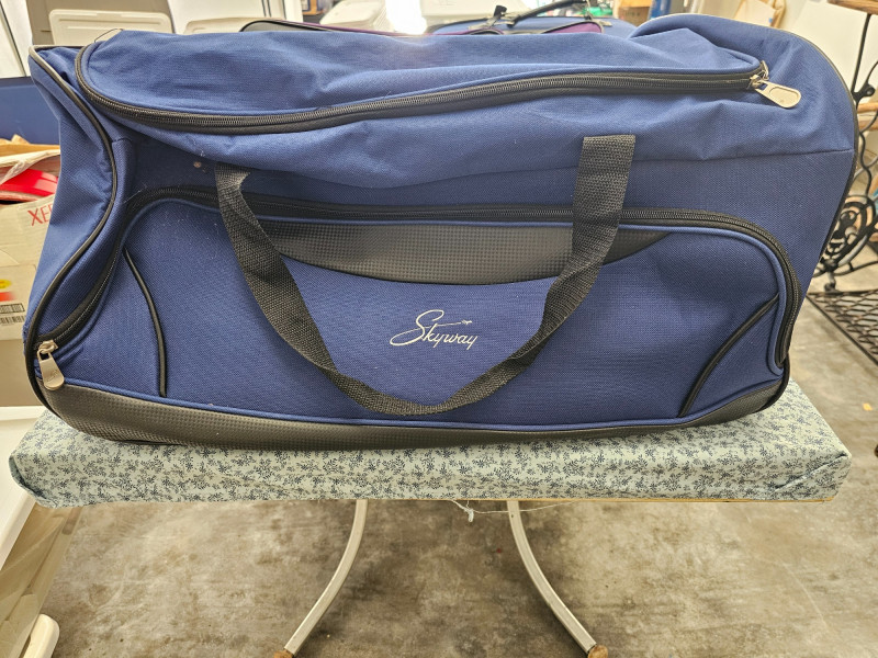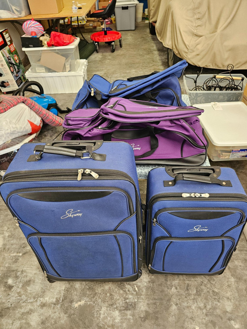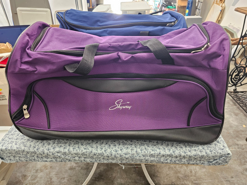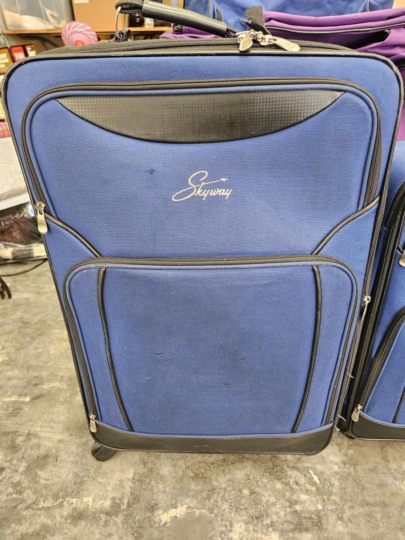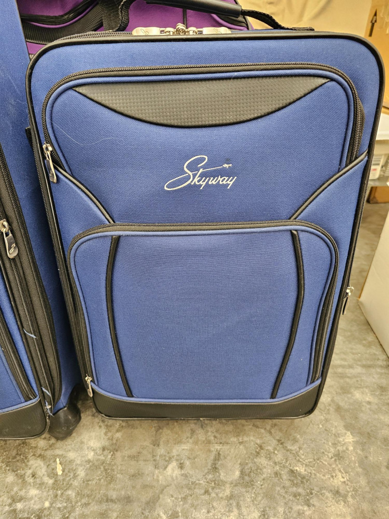 8-Piece Skyway Luggage Set (1) 28" Roller Bag - Blue (1) 22" Roller/Carry-On Bag - Blue (1) 24" Roller Duffle Bag - Blue (1) 16" Carry-On Bag - Blue (1) 8.5" Toiletries Bag - Blue (1) 24" Roller Duffle Bag - Purple (1) 16" Carry-On Bag - Purple (1) 8.5" Toiletries Bag - Purple BONUS! (2) 16" Concord Carry-On Bags - Black All appear to be in new to lightly used condition! 10 pieces of luggage in all!