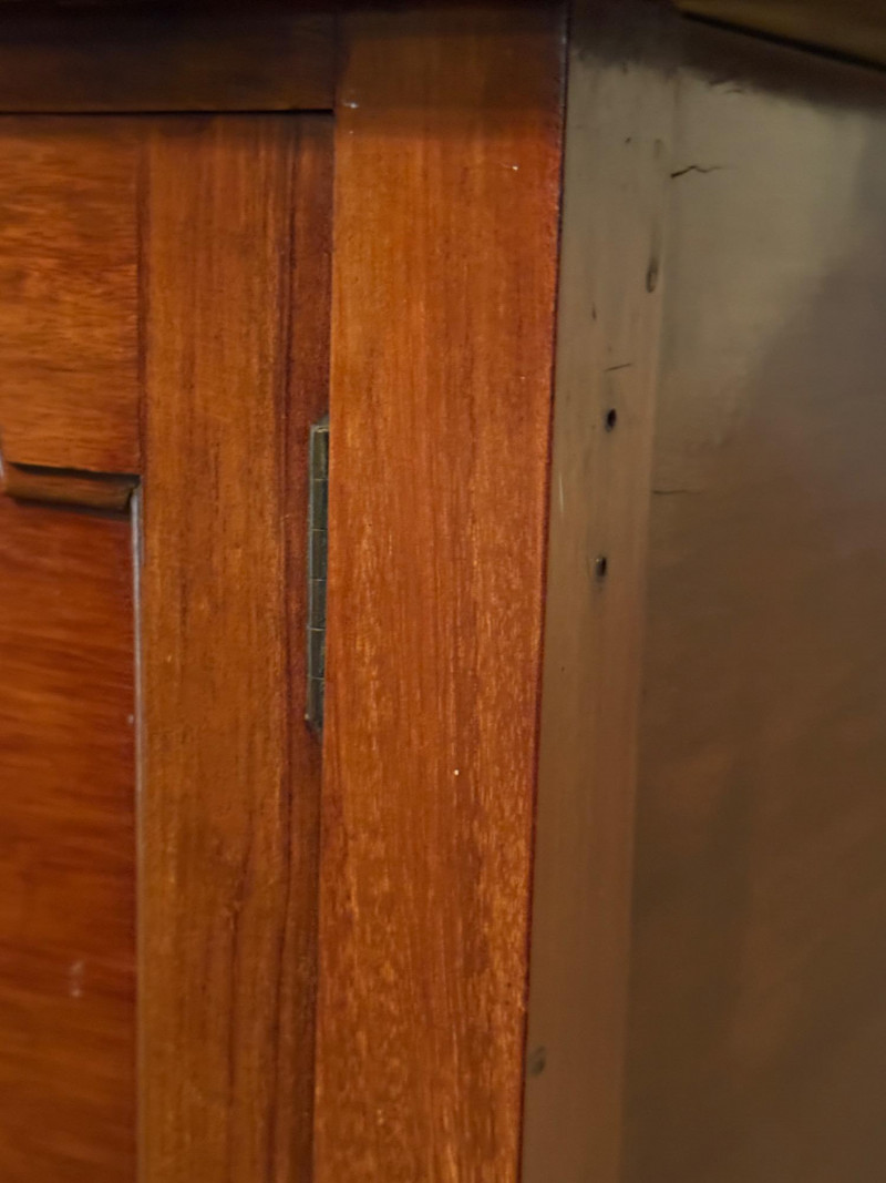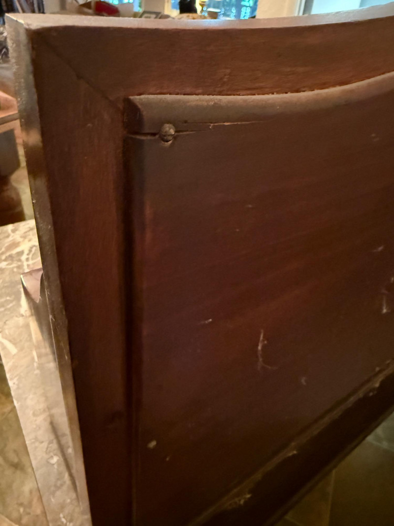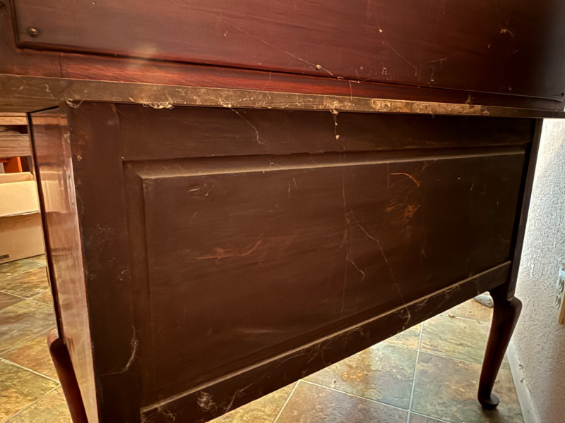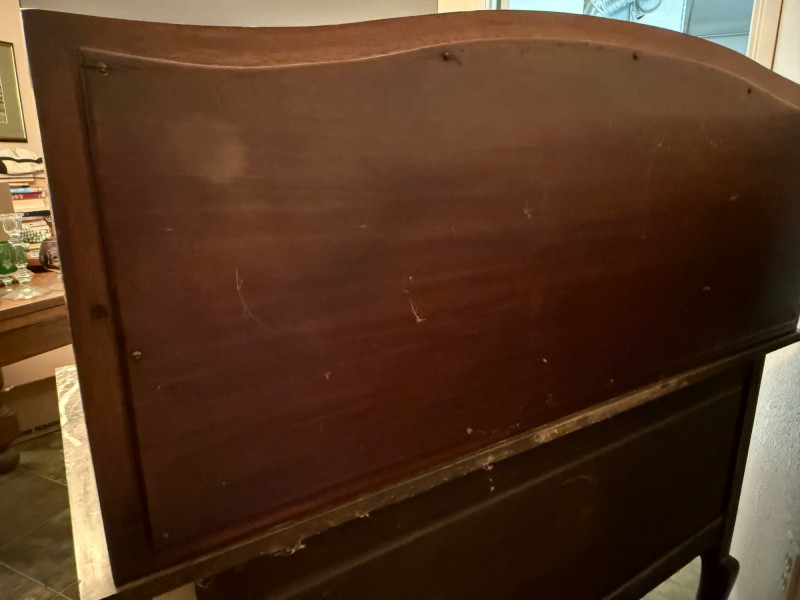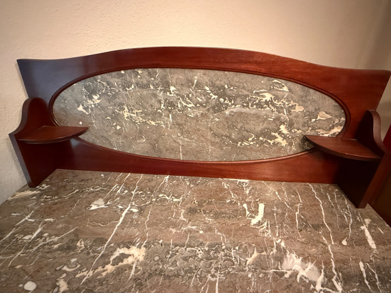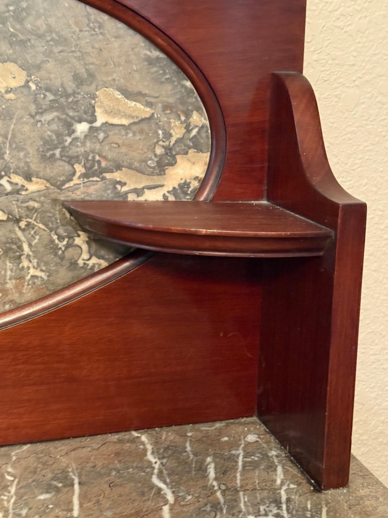 Granite top and back cabinet with cabriolet legs. Possibly a wash table with double doors. This would make a beautiful modern day bath replacement vanity. 42x29x46”