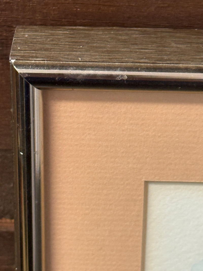 Matted and framed under glass in a rose gold brushed frame 9x11”