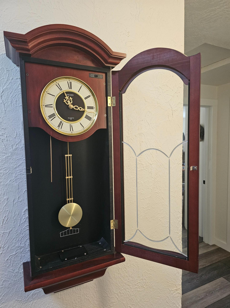 Seiko Wood Pendulum Quartz Wall Clock Combines traditional design elements with modern quartz movement Chimes and sounds wonderful.