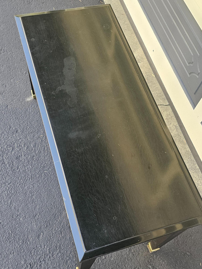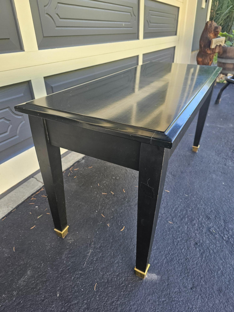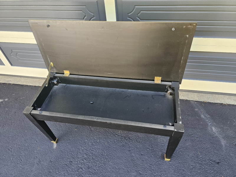 Black Piano Bench With Sheet Music Storage Fully functional duet bench with gold colored feet Some marks in finish and scratches on bench 11.5"T x 35"W x 14.5"D
