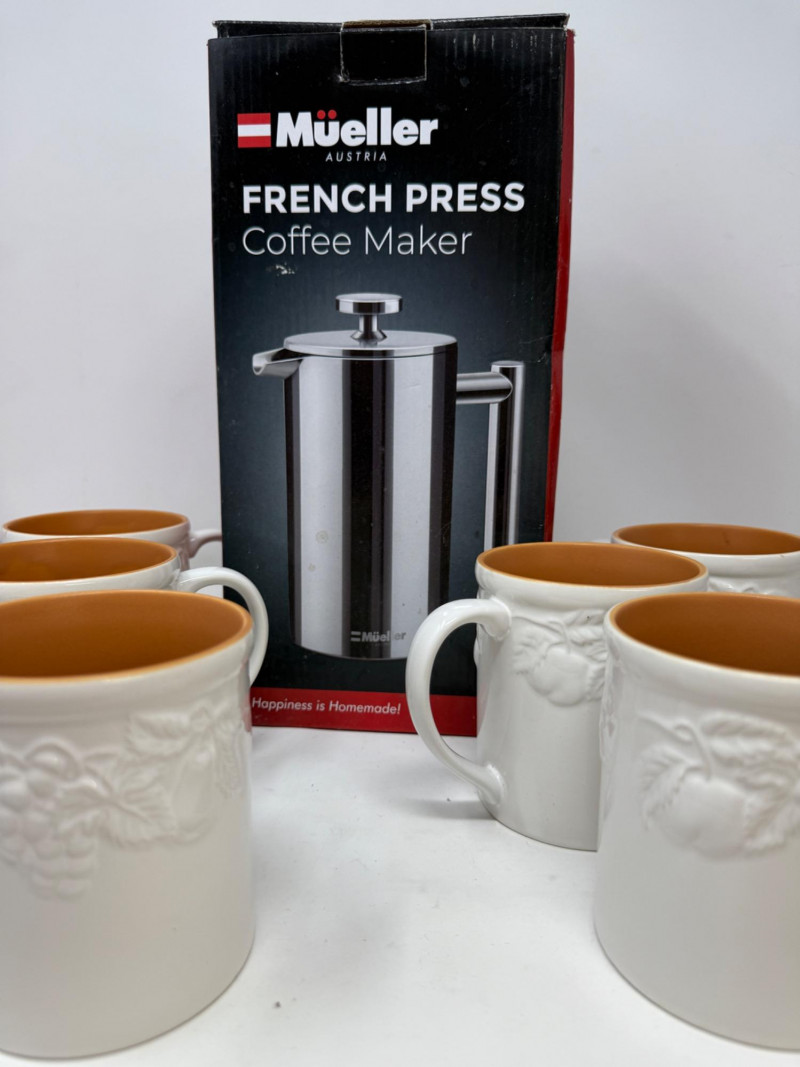Lot # 40 - NIB Mueller French Press & (6) Mug Set