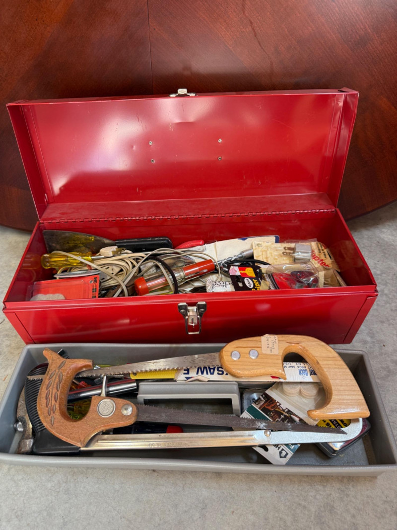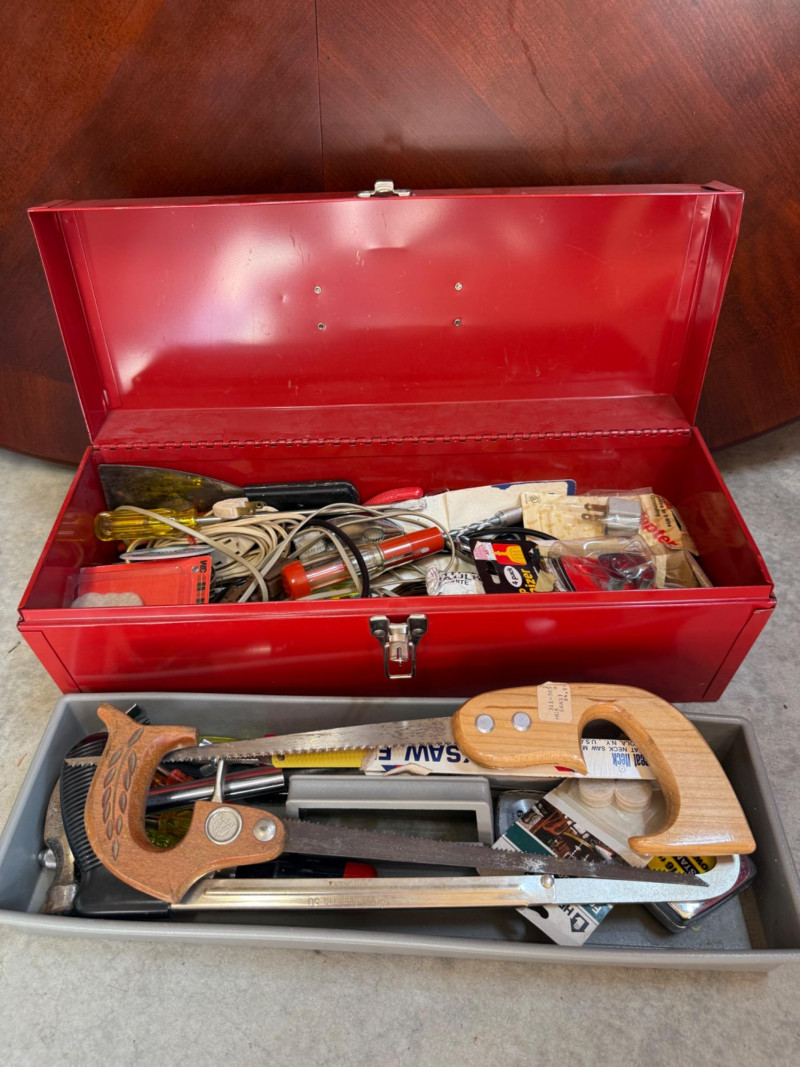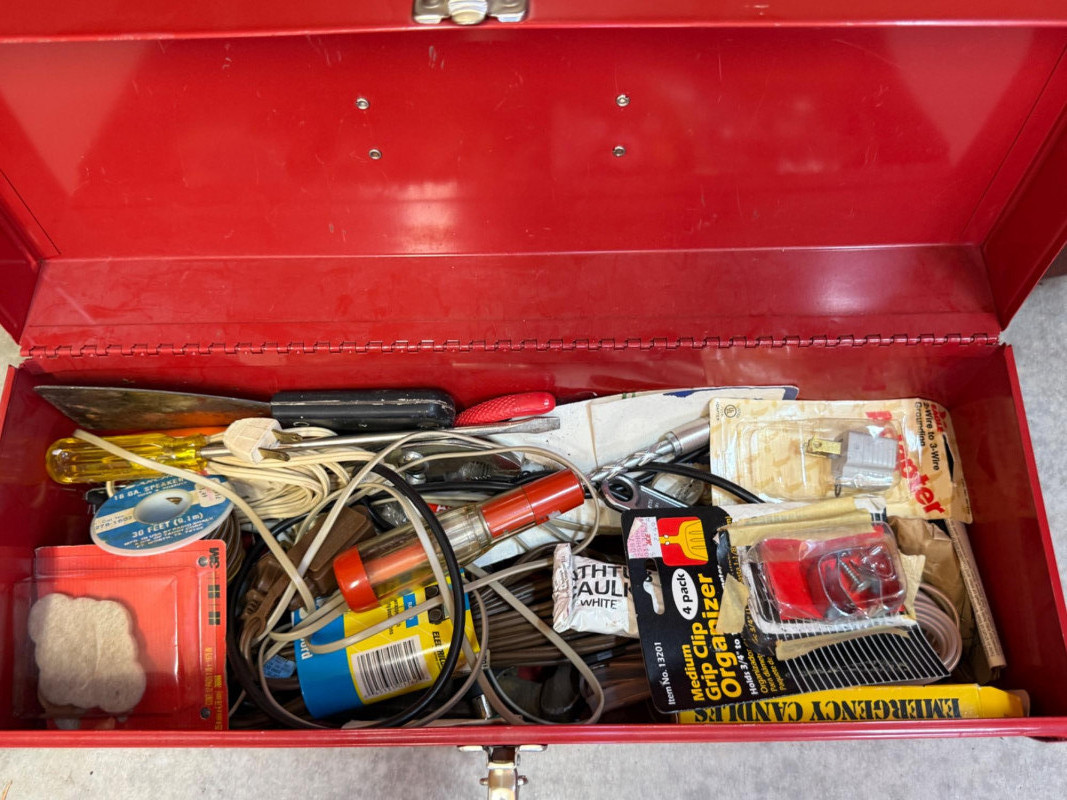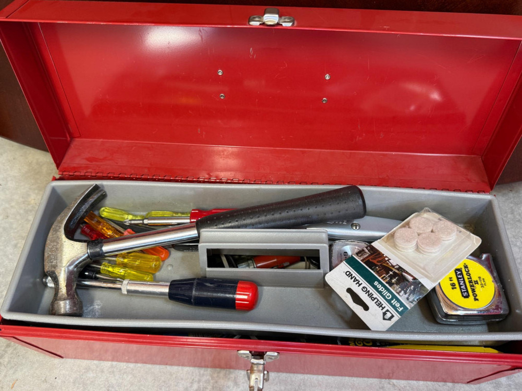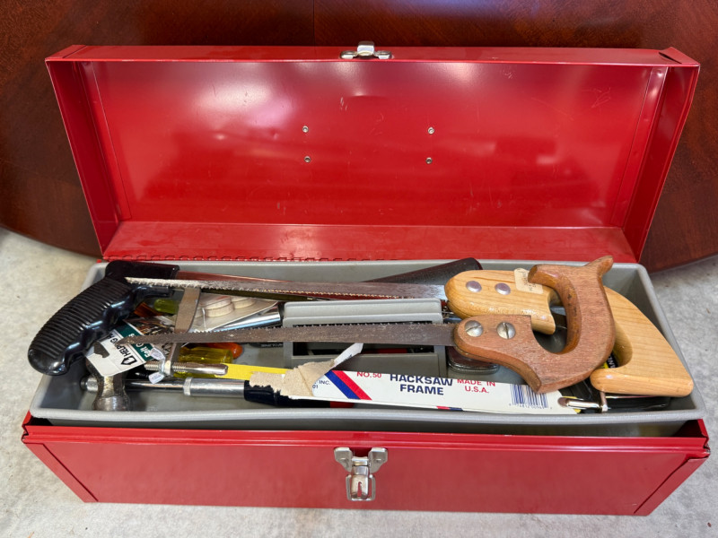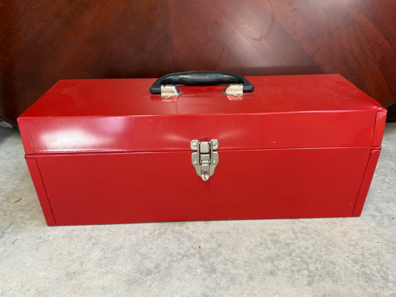 Metal Toolbox Full of Hand Tools 19x7x7” lockable with one removable tray