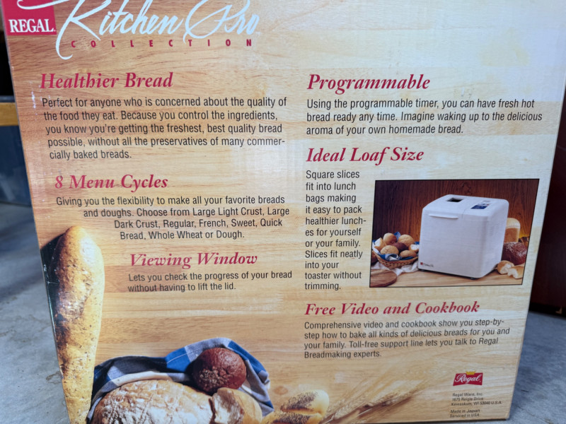 Regal Kitchen Pro Breadmaker with VHS Video In original box. Very lightly used. Untested.