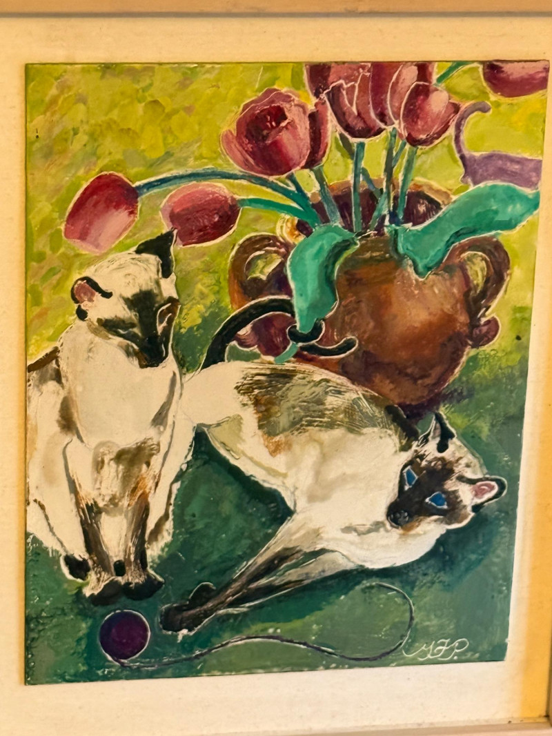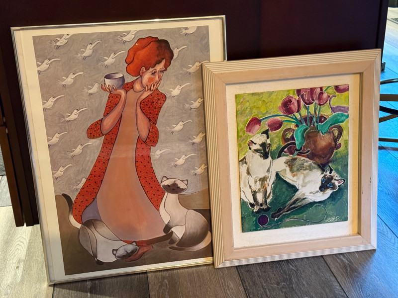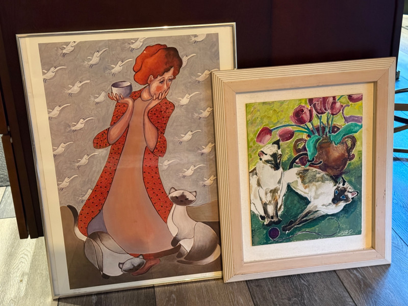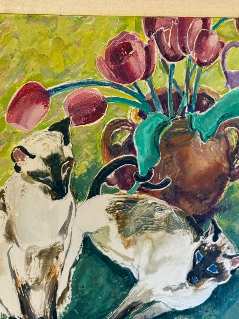 Lot # 87 - Original Siamese Cats Painting & “Paper Birds” By Dixie Rogerson