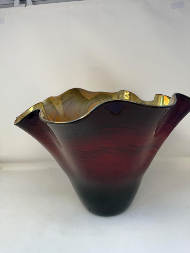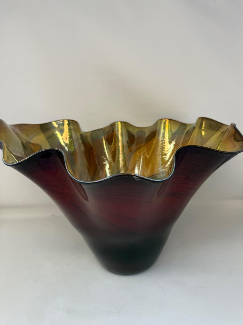 Hand Blown Centerpiece Vase Signed by Artist Dan Bergsma 17x12”