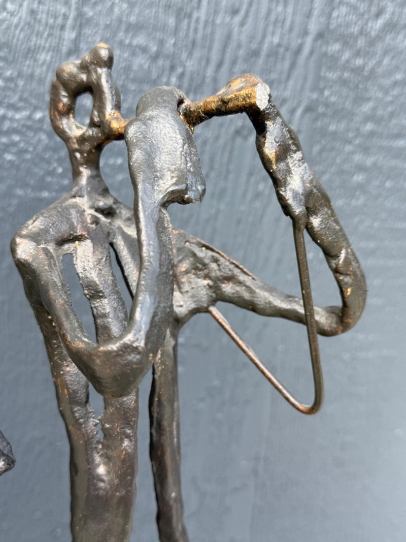 Some repair needed on the trombone player, Flute player is missing part of the flute.