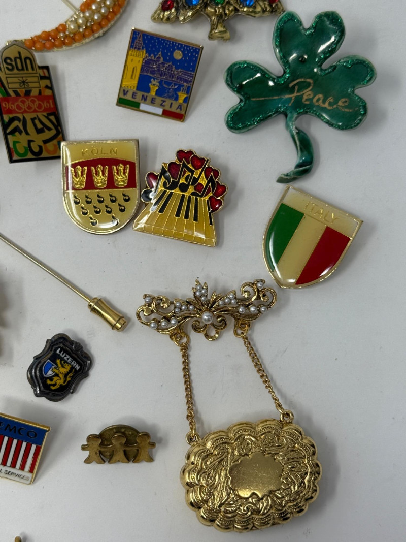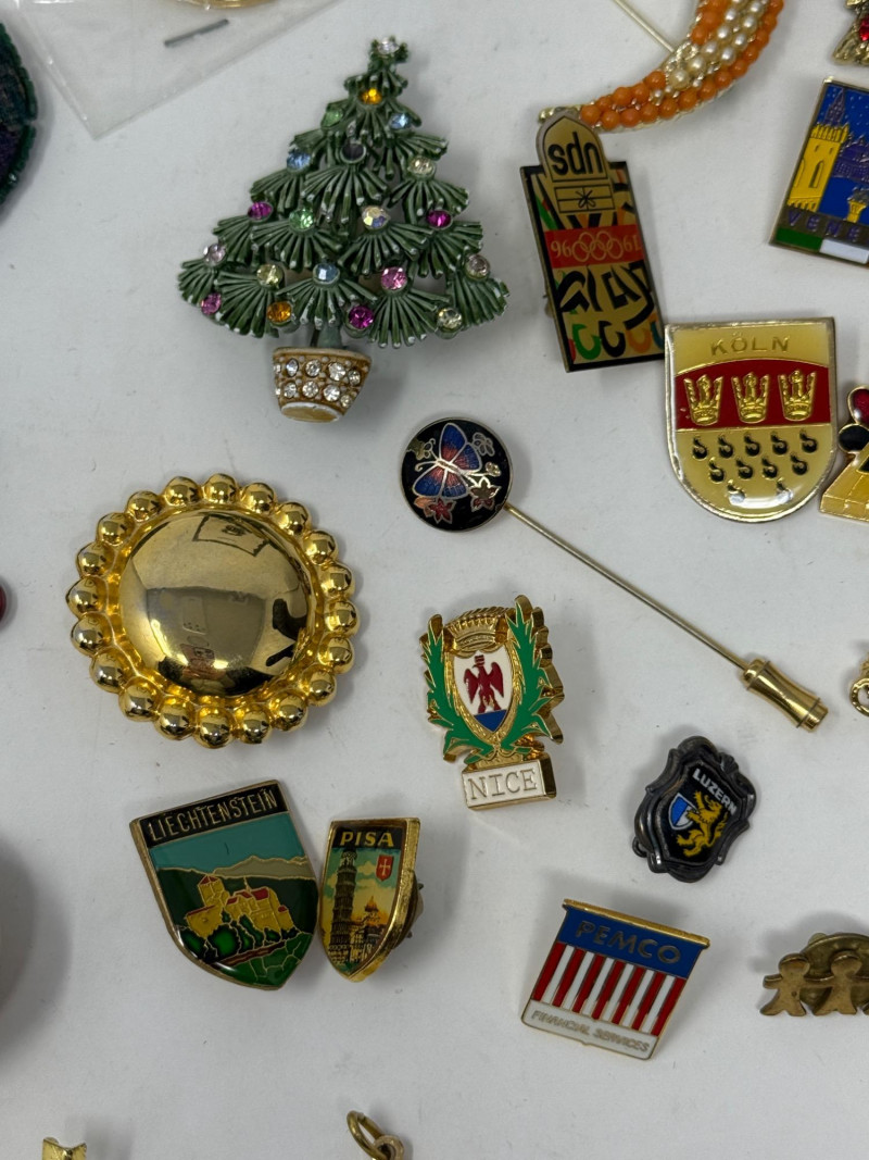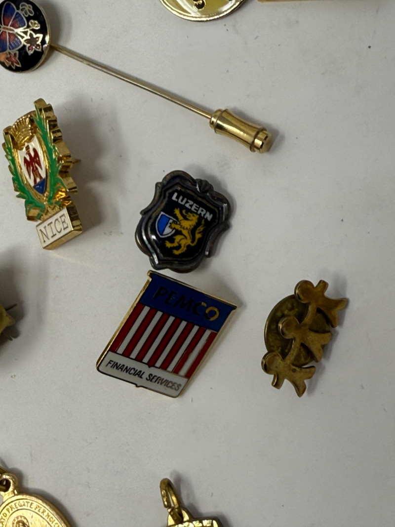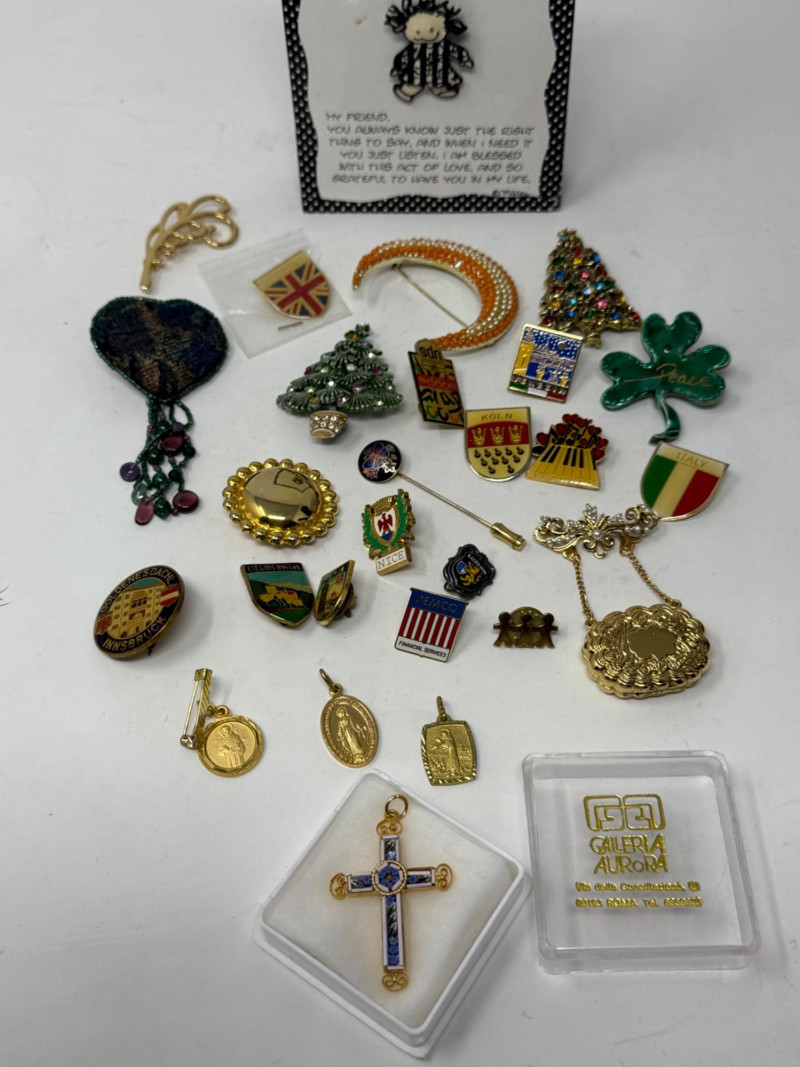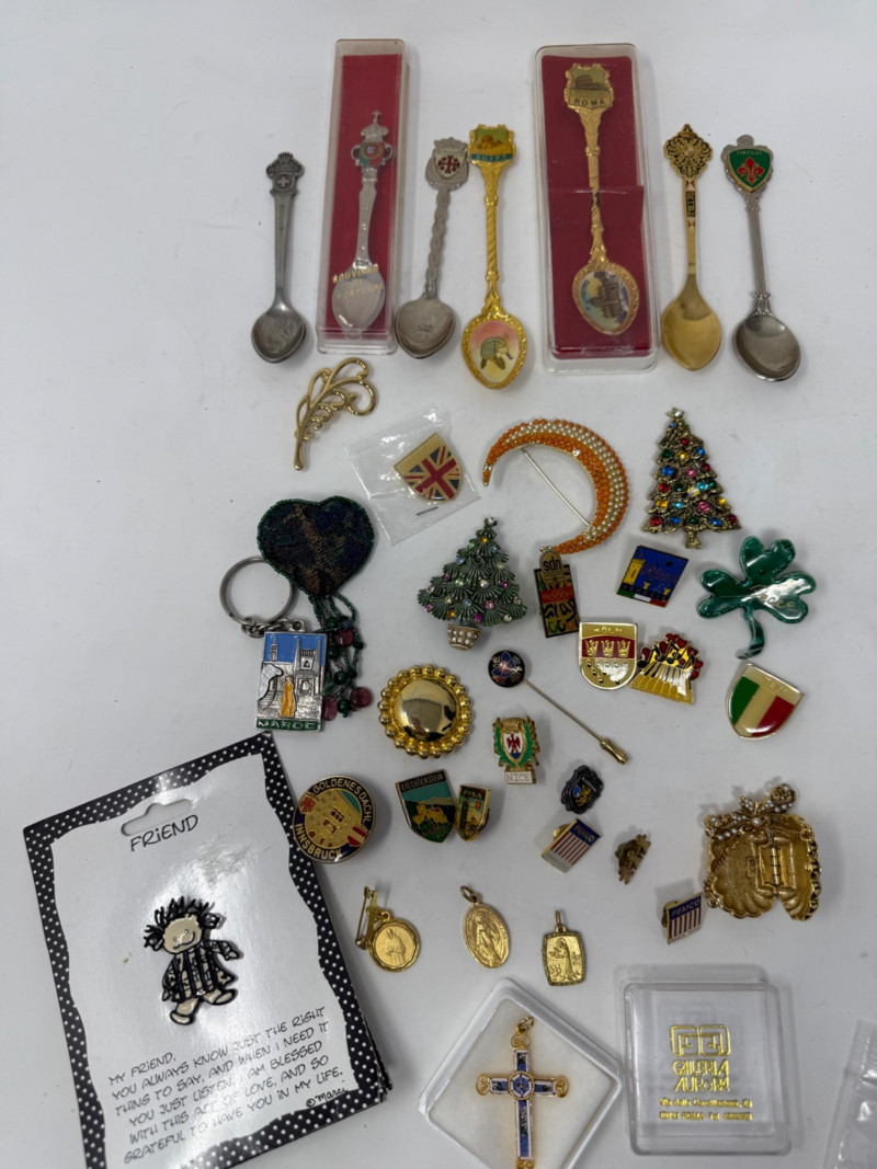 Lot # 110 - Pin Collection & Religious Medals & Souvenir Spoons