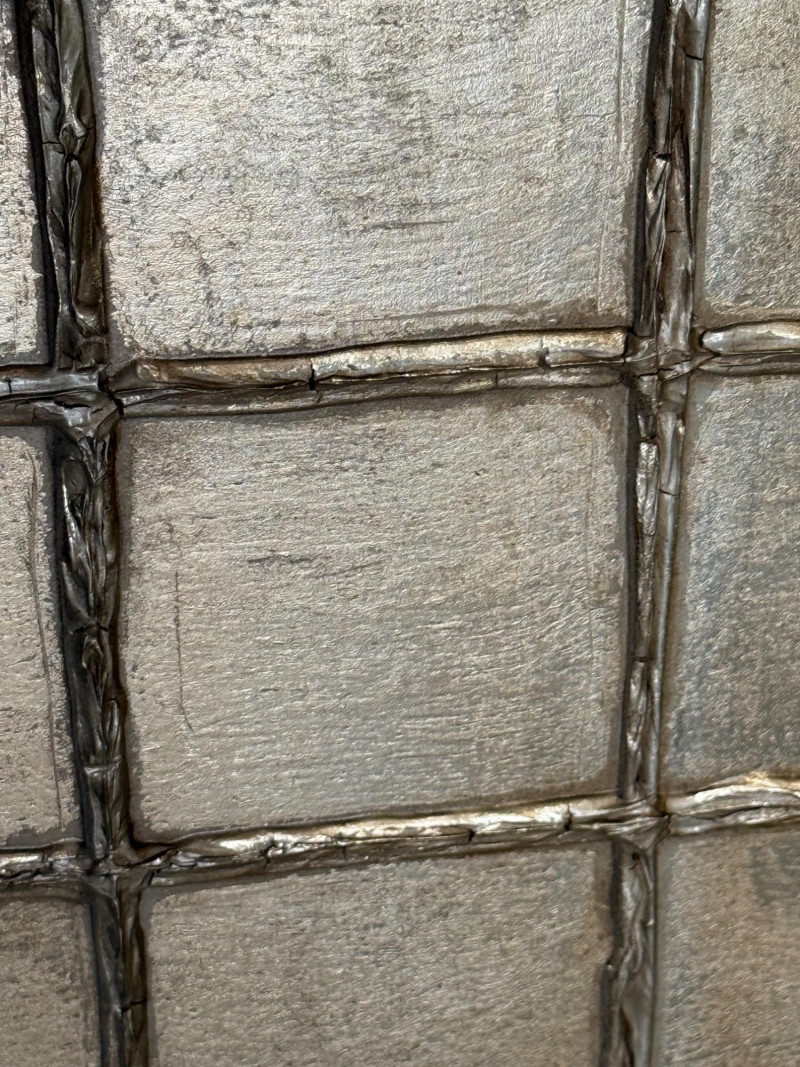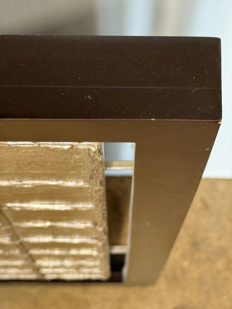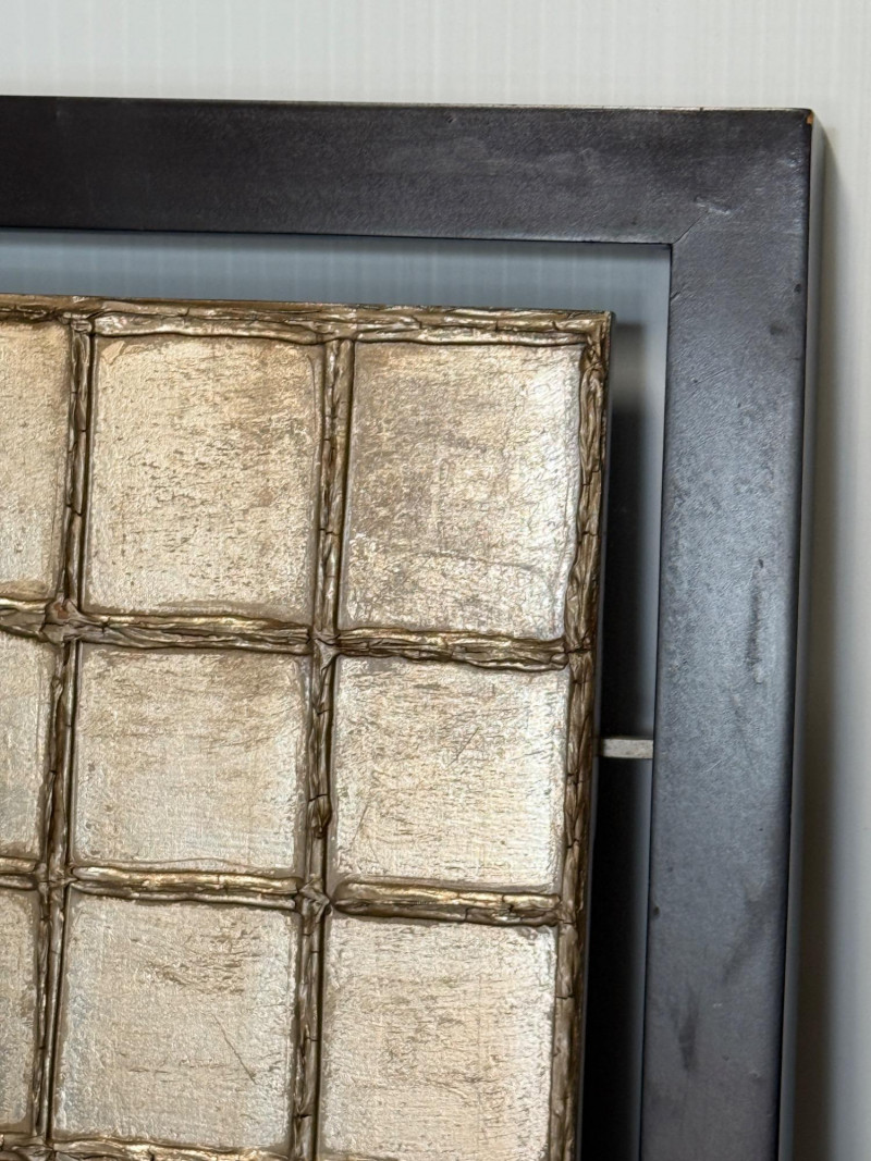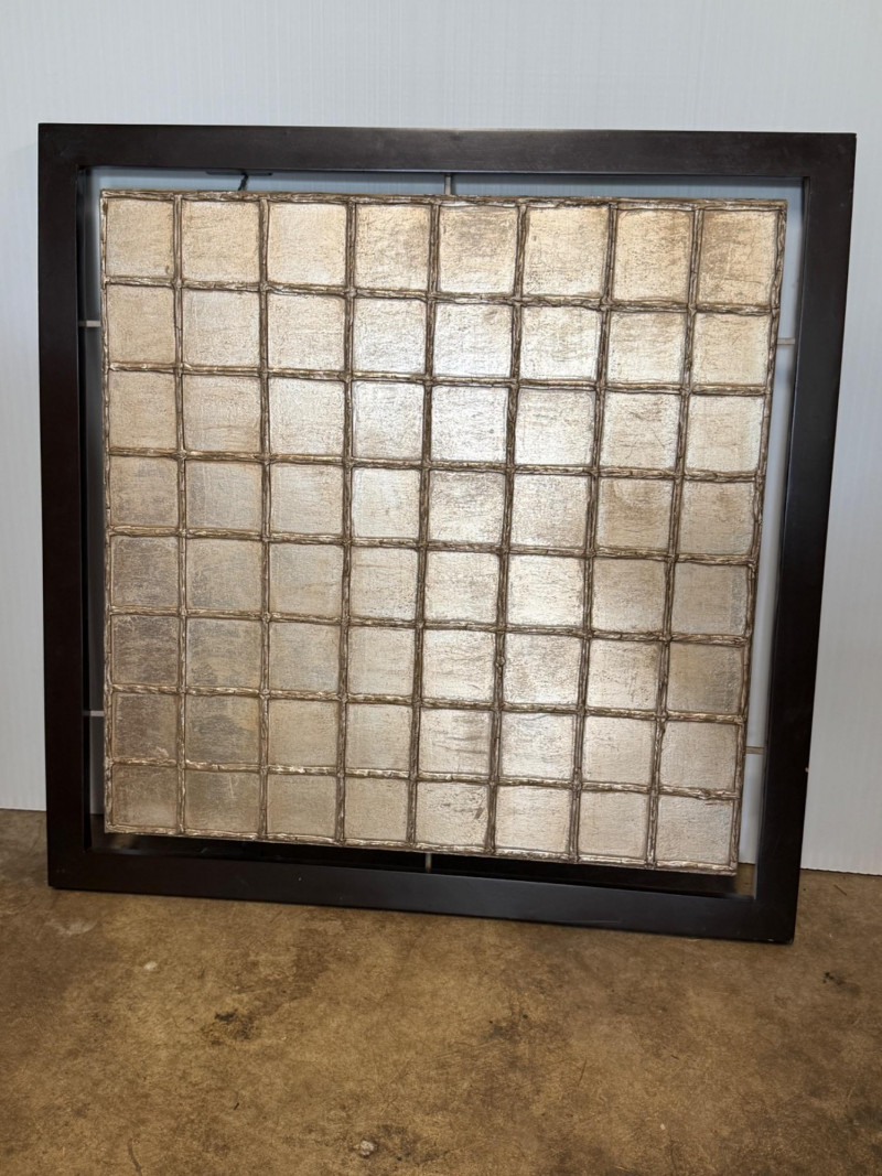 Square of Squares Wall Art Black wood frame around pewter color design. This frame can easily be repurposed for another project.