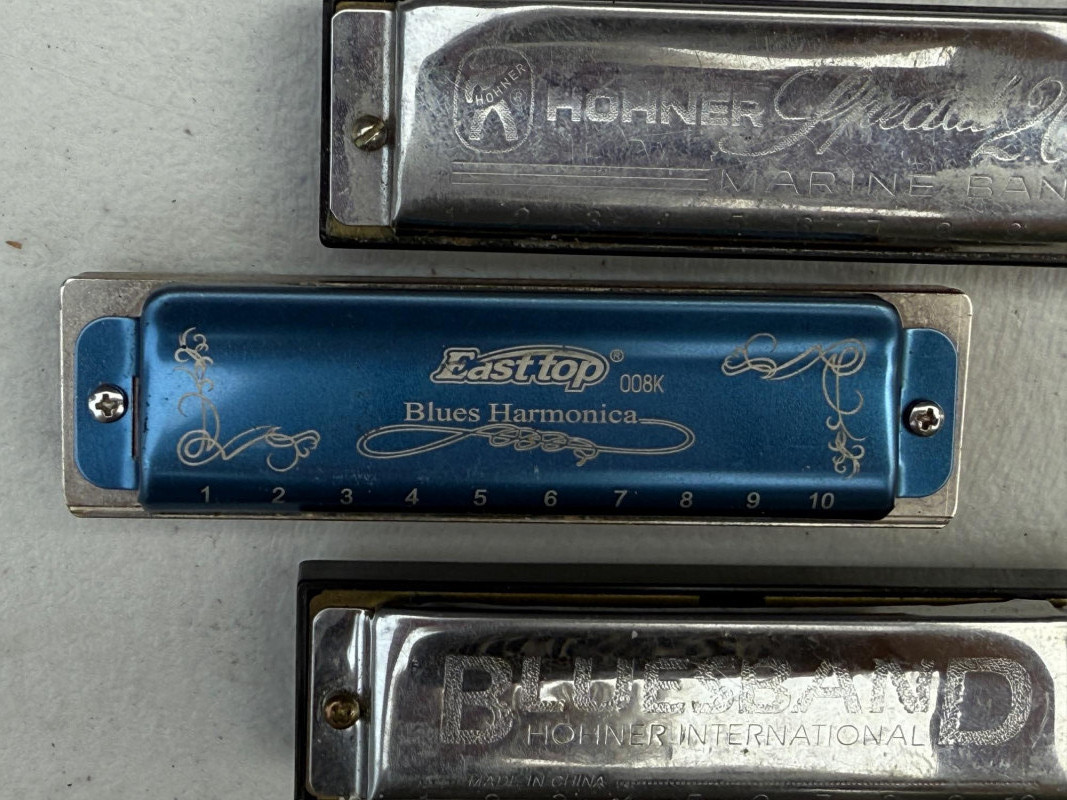 (3) Harmonicas - East Top, Hoerner Special 20 & Blues Band East Top 008K Blues Harmonica Hoerner Special 20 Marine Band C Hoerner Blues Band C Not tested