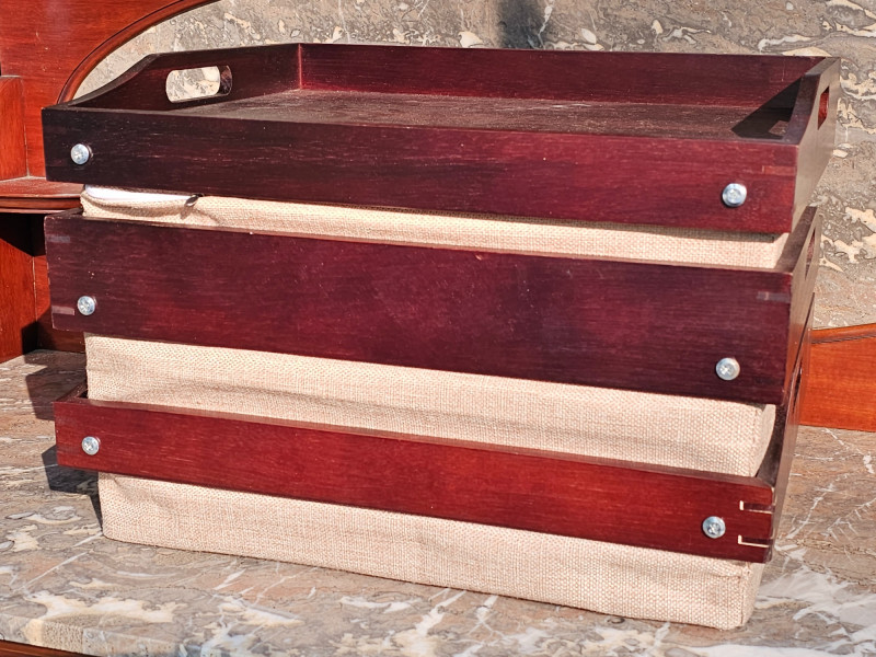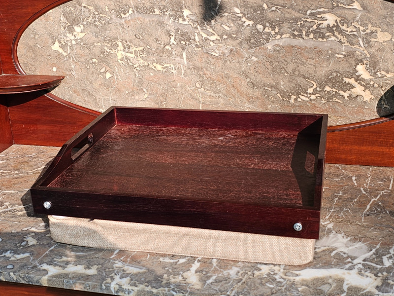 (3) Lapdesks Or Eating Trays Padded on the bottom, wooden tray on top with handles 5"T x 17"L x 13.5"D