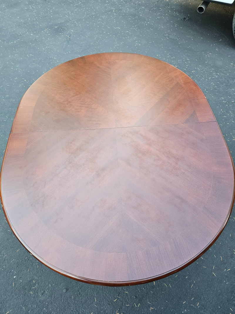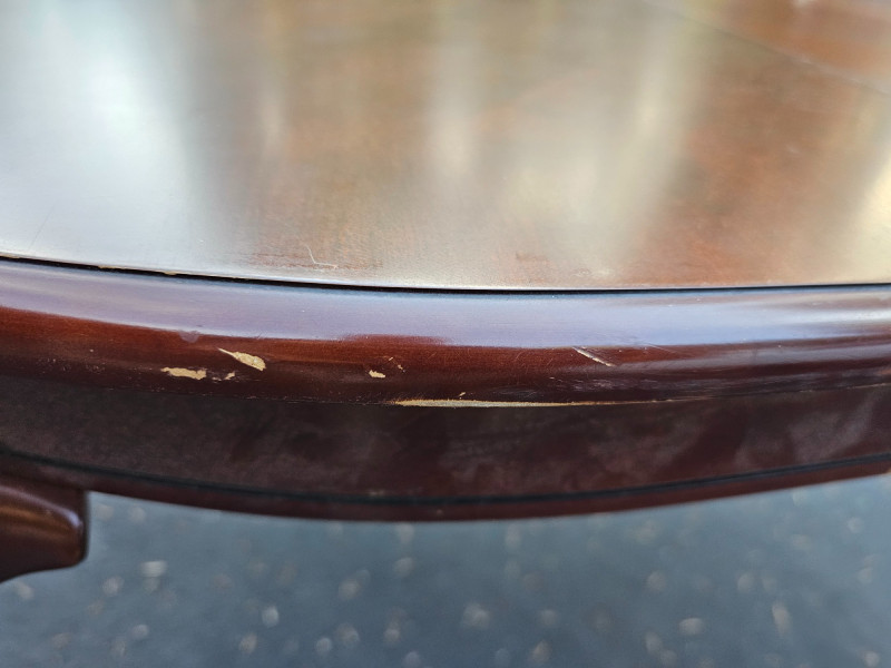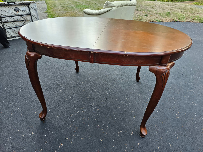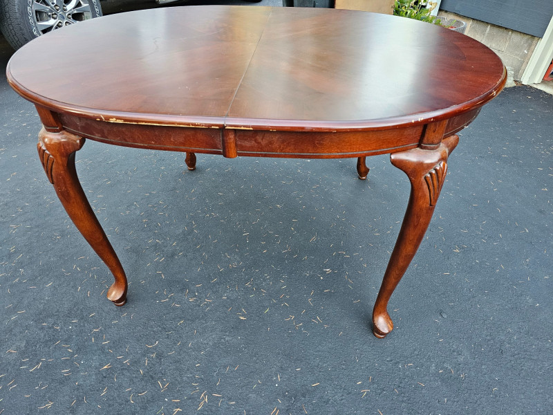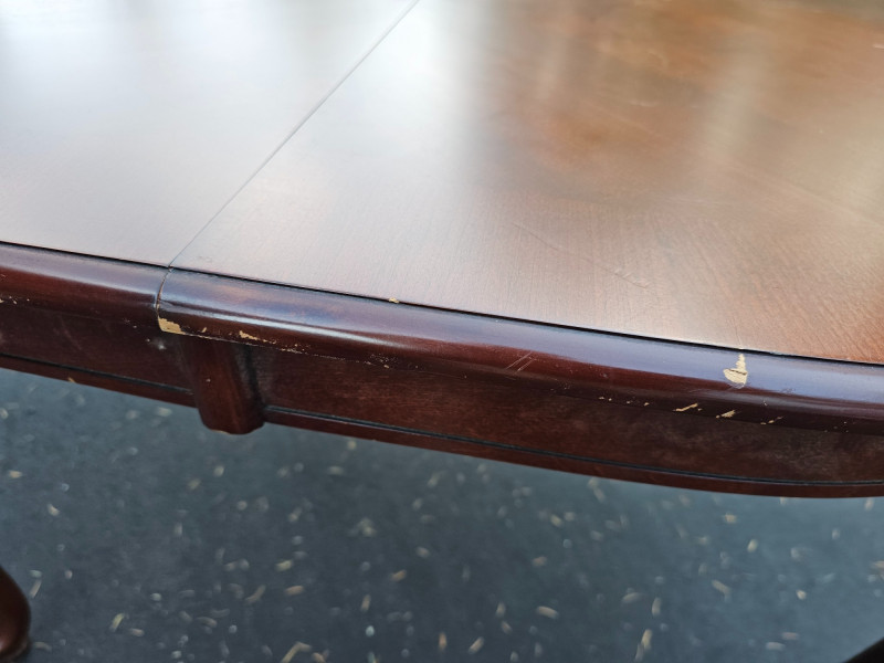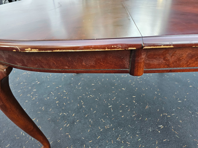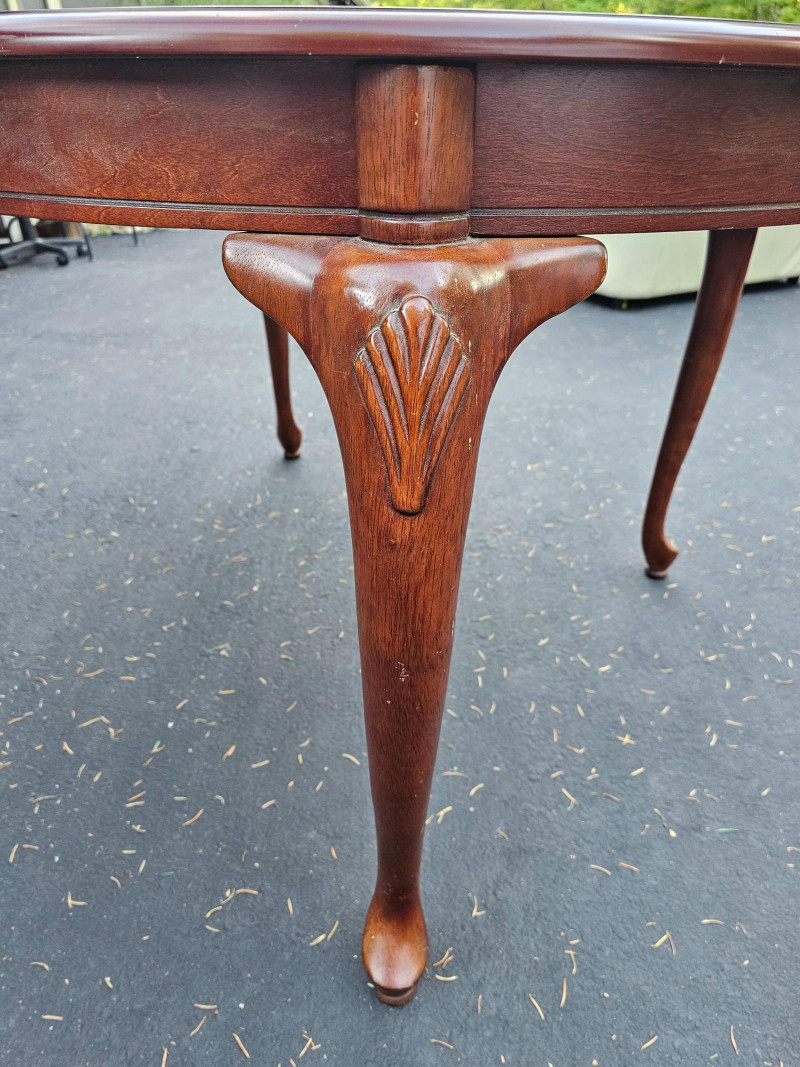 Queen Anne-Style Dining Table With Extra Leaf Mahogany finish is nice & rich Some scratches hes on edge, see pics for condition 30"T x 53.5"Lx 42"W
