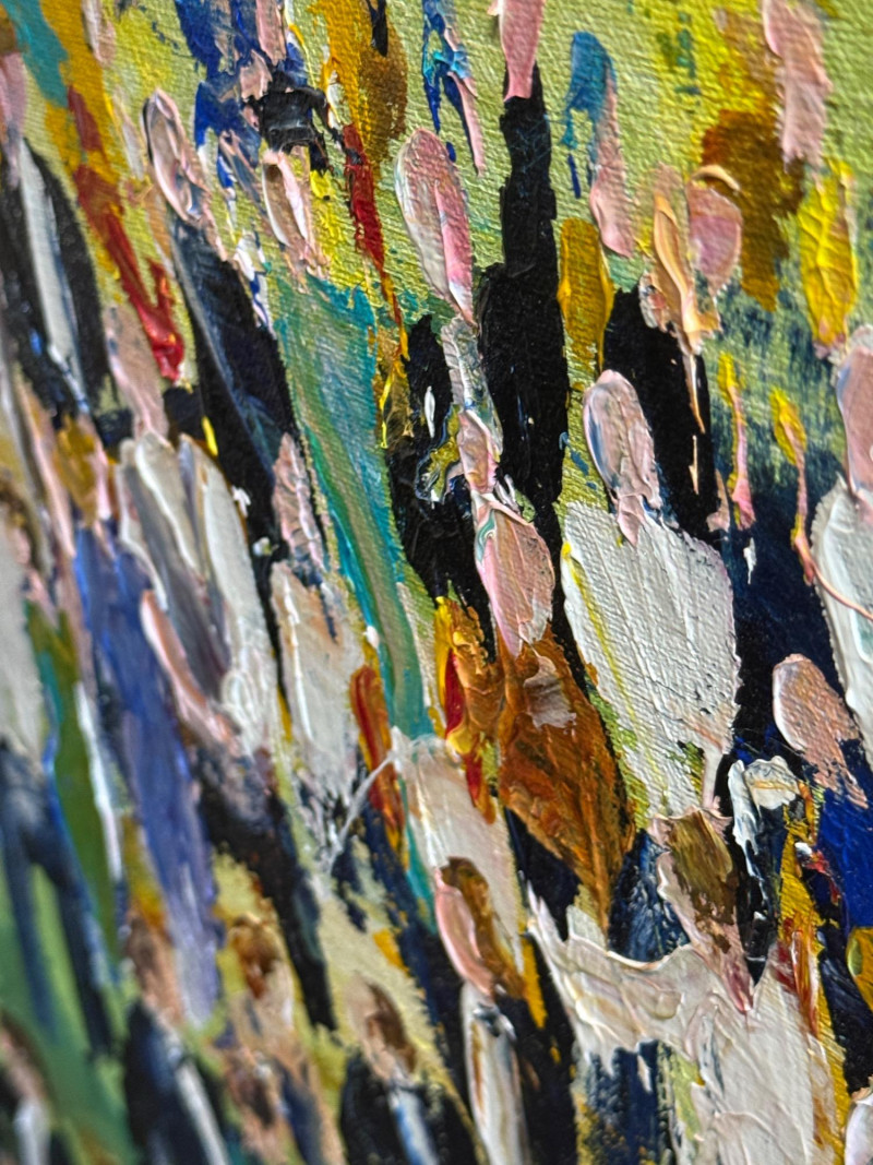 Very vibrant and lots of texture. Measures 48x36”