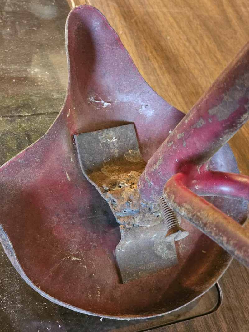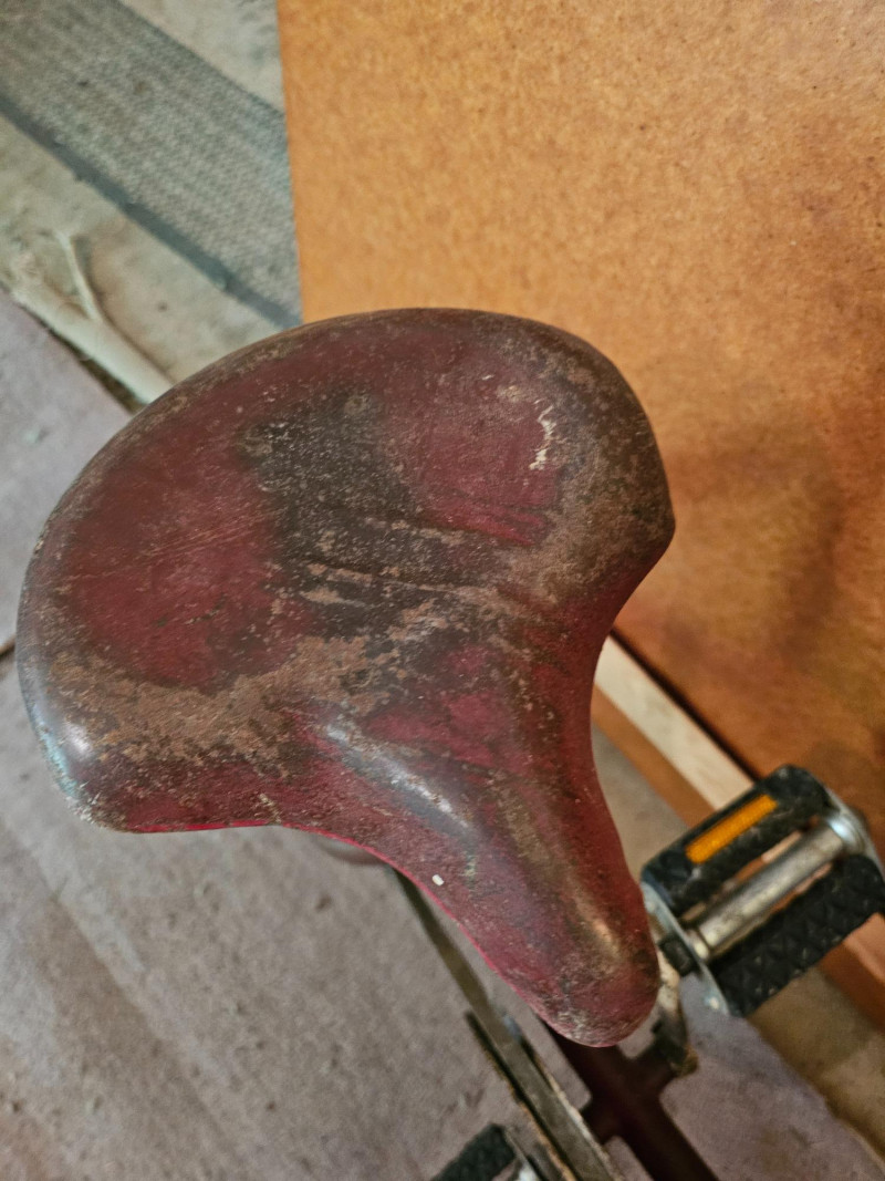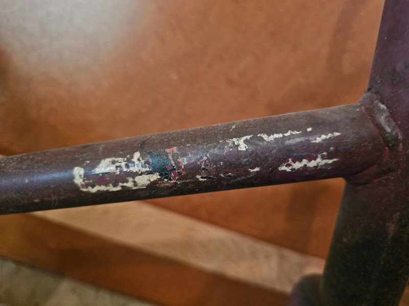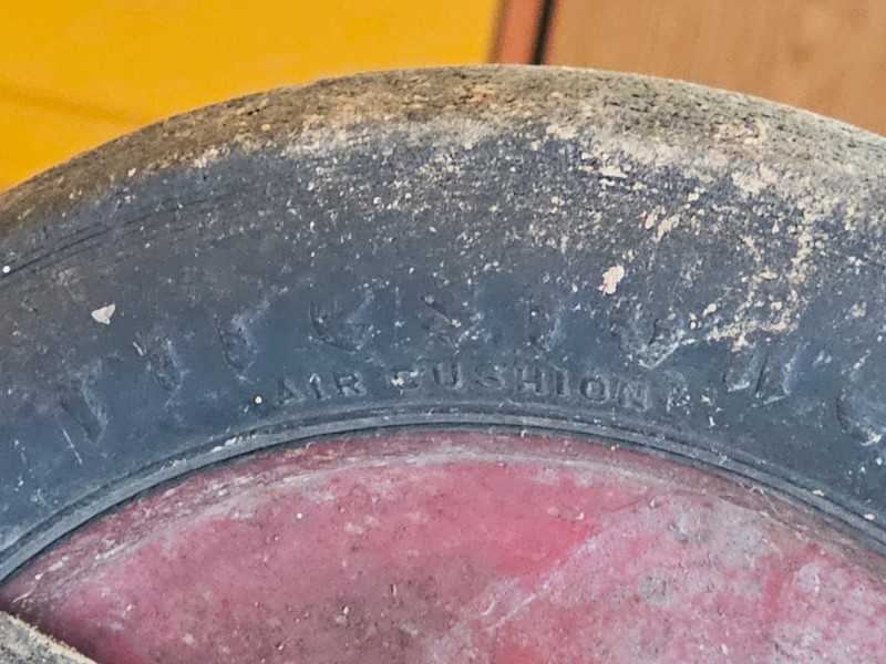 Vintage Child's Belt Driven Sidewalk Bicycle Unknown manufacturer in 1930s-1940s Solid metal construction V-belt is intact and bike appears complete Seat height 20.5" Firestone 10" solid rubber tires Possible weld repair to handlebars (see pics) 33"T x 42"L x 13"W