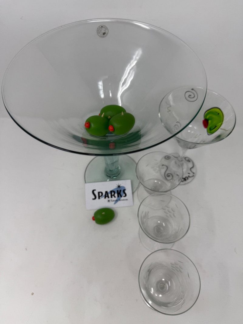 Martini Time! Giant Hand Blown Glass From Mexico 10” tall Giant Martini glass with 4 candle olives.