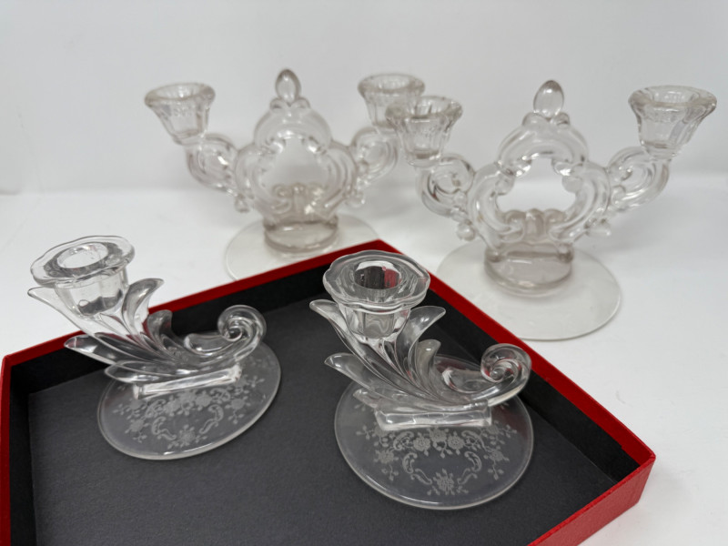 Lot # 28 - Fostoria Double and Cambridge Rose Candle Holder Sets