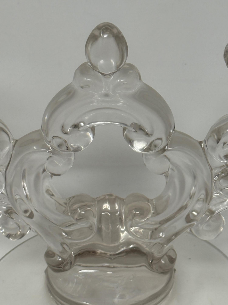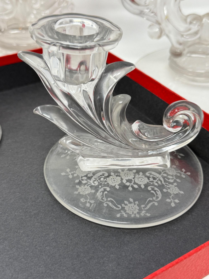 (2) Cambridge Rose Keyhole Double Candle Holders (2) Fostoria Crystal Candle Holders with clear glass votive inserts