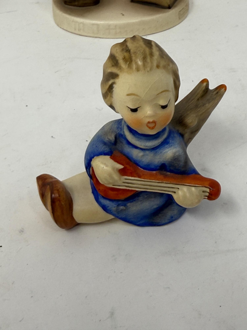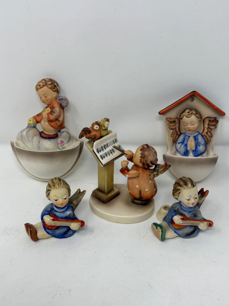 Angel Hummels & (2) Holy Water Wall Vessels Bird Duet 2 Angels Playing Lutes Praying Angel holy water holder Angel tossing flowers from cloud in Heaven