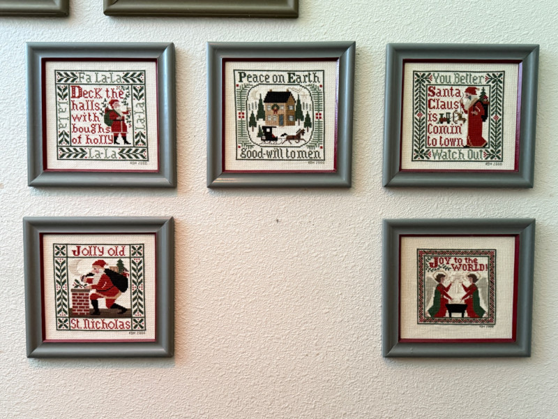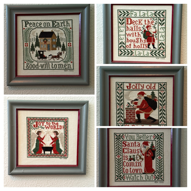 9x9” Needlepoint Santas Deck the halls Jolly Old Saint Nick Joy To The World Peace on Earth Santa Clause Is Coming To Town