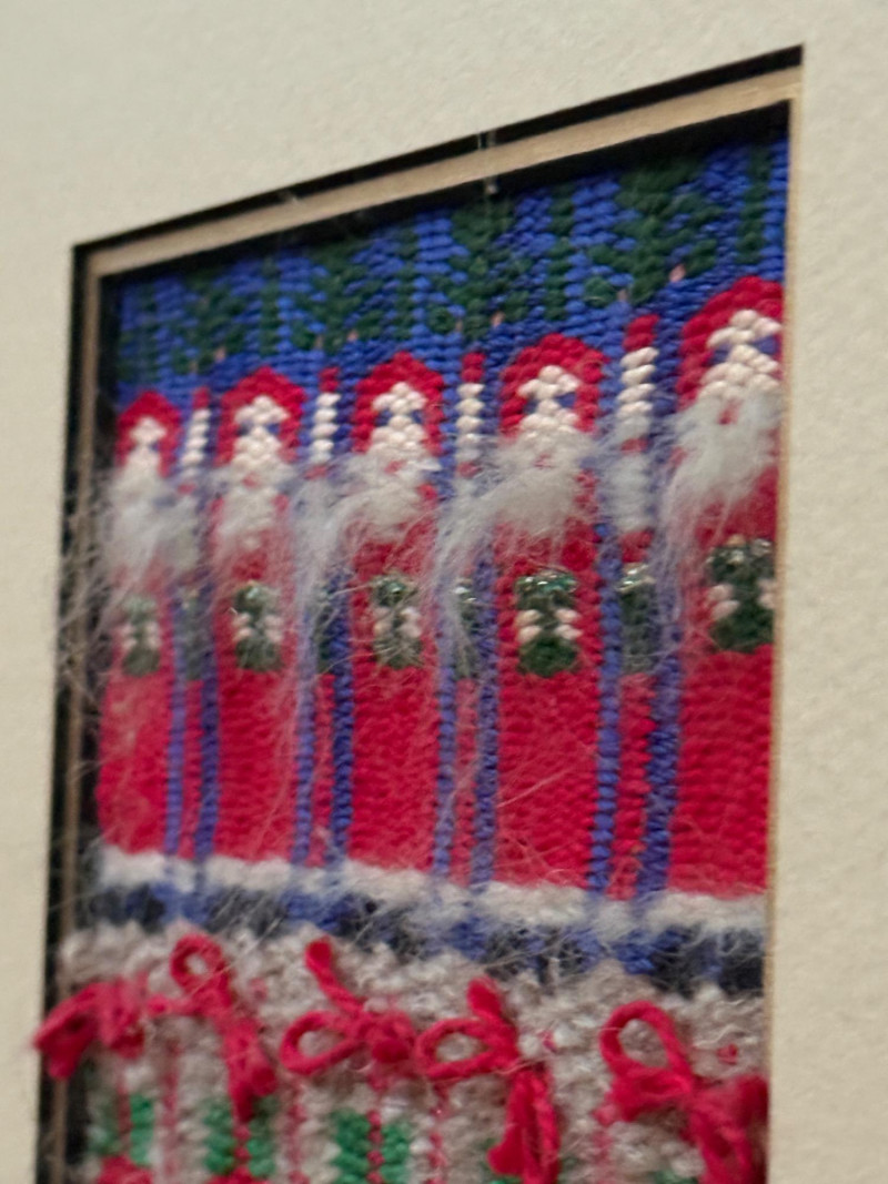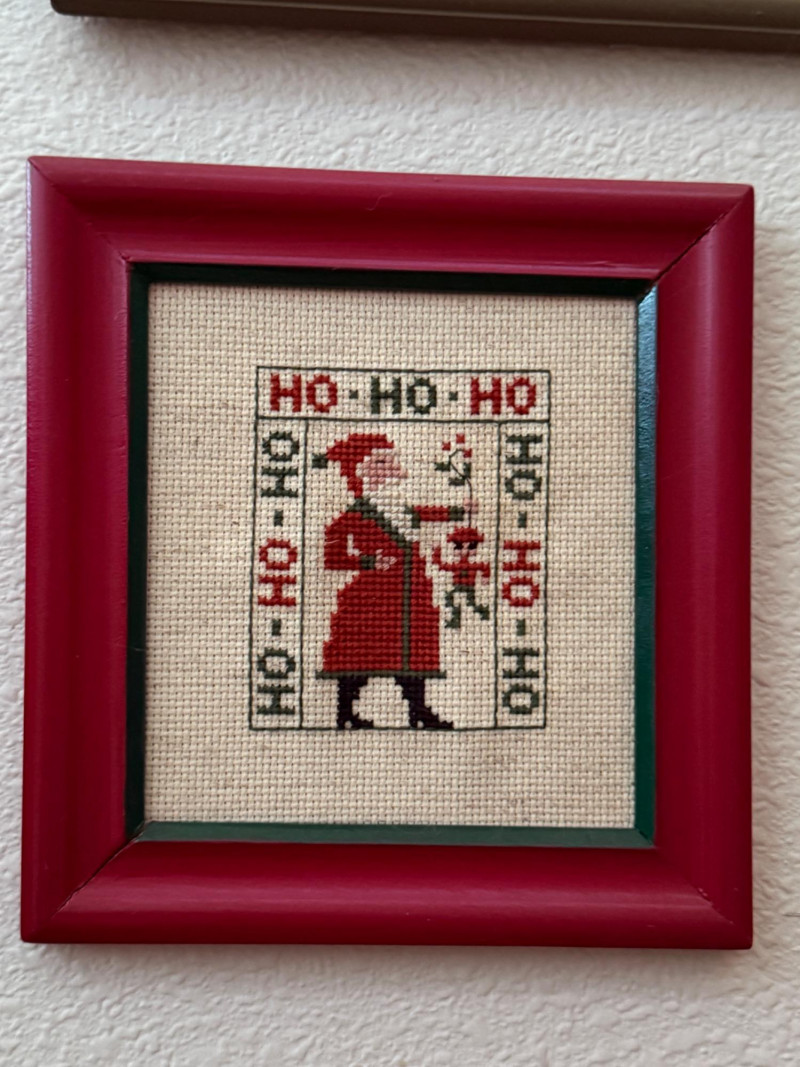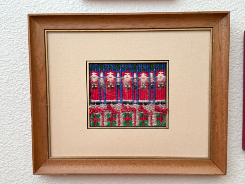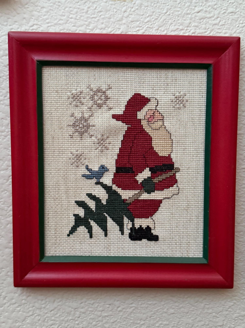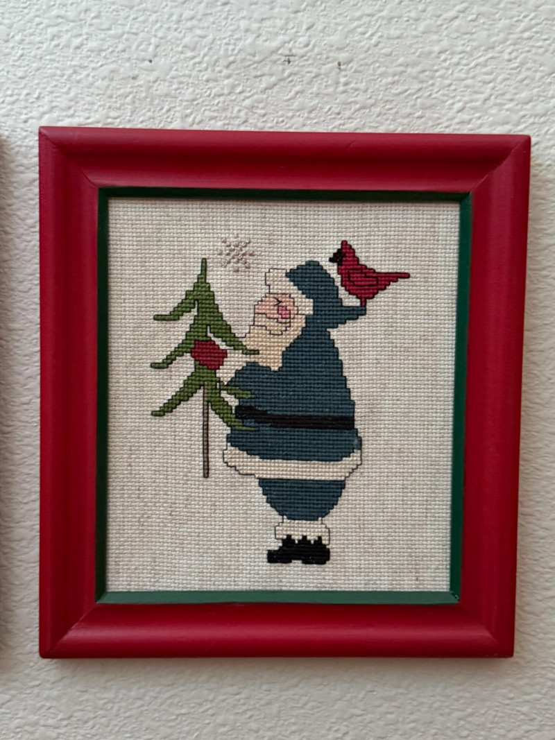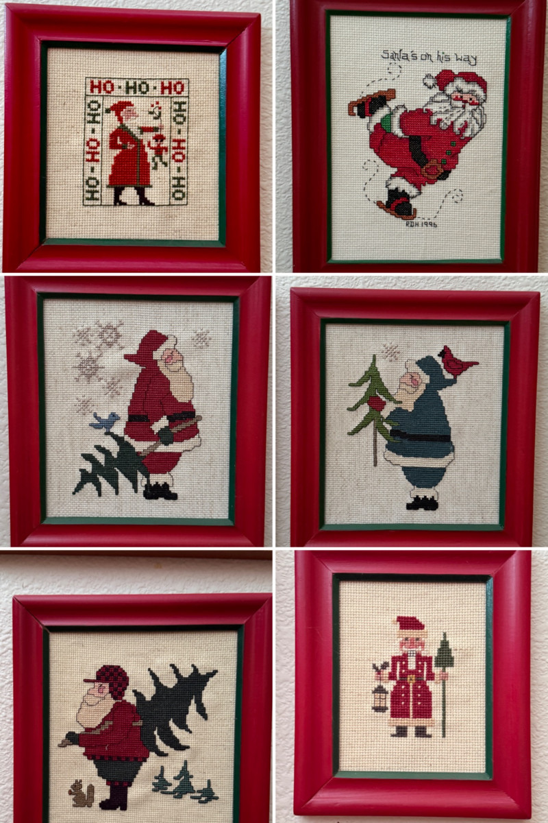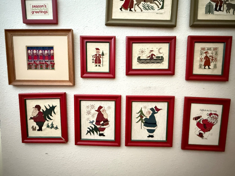 Lot # 42 - (9) Red Frame Needlepoint Santas