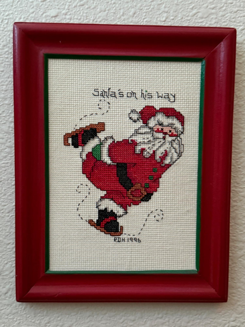 7x7.5- 11.5x9.5” Seasons greetings Soldier santas with fuzzy beards Tree cutting, walking and pulling, carrying Boating, skating and lantern holding Santas.