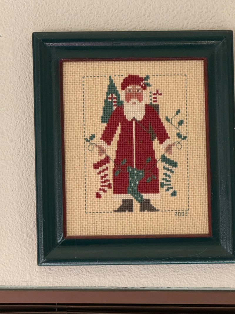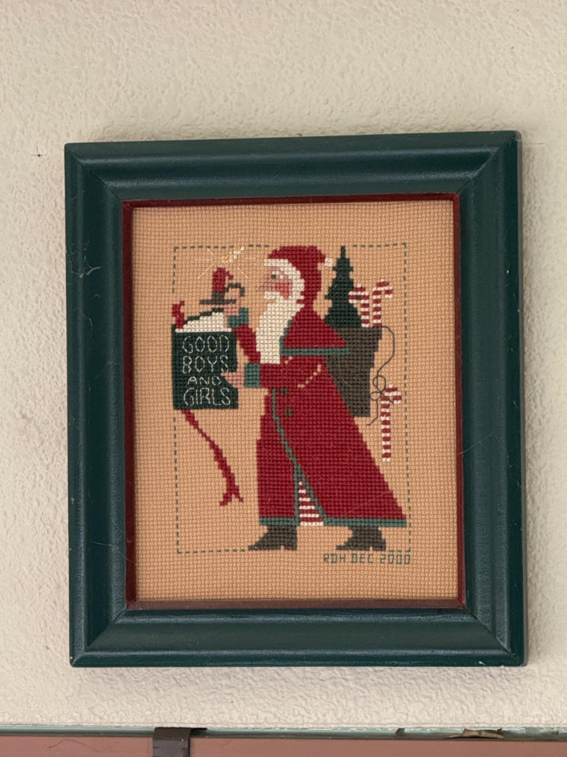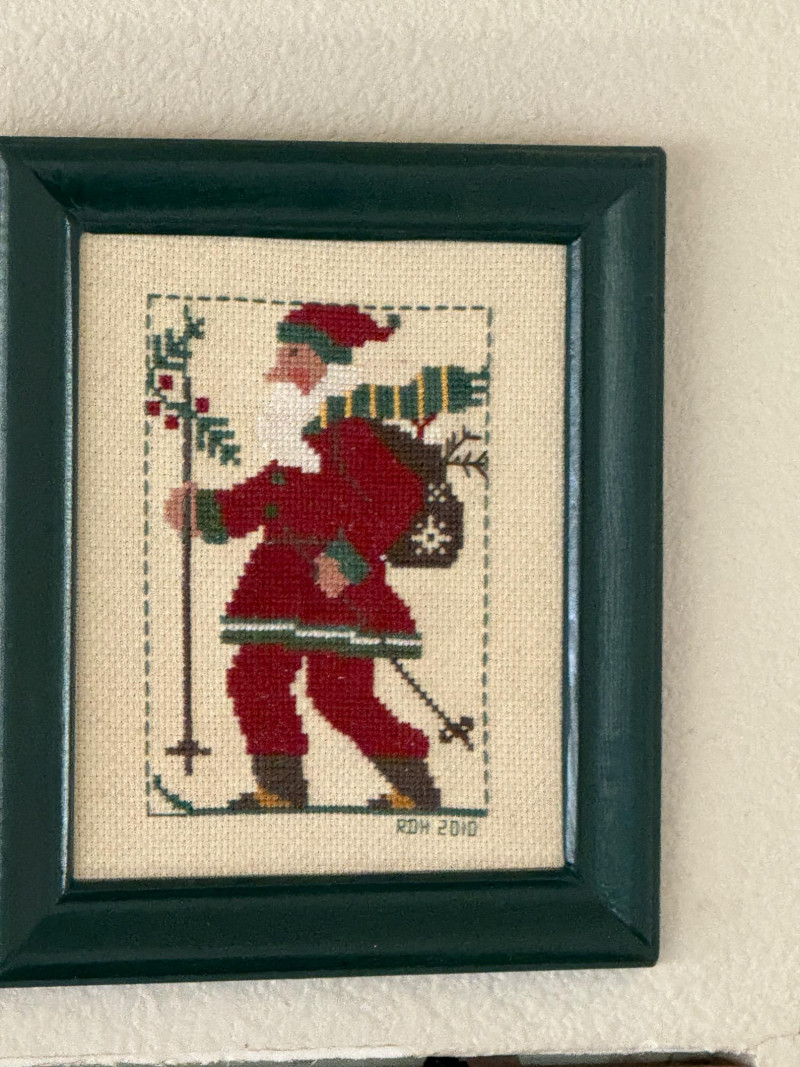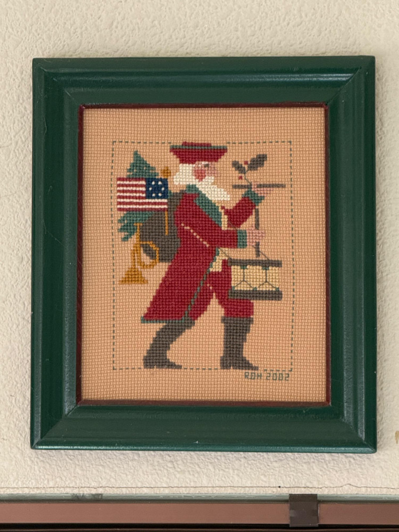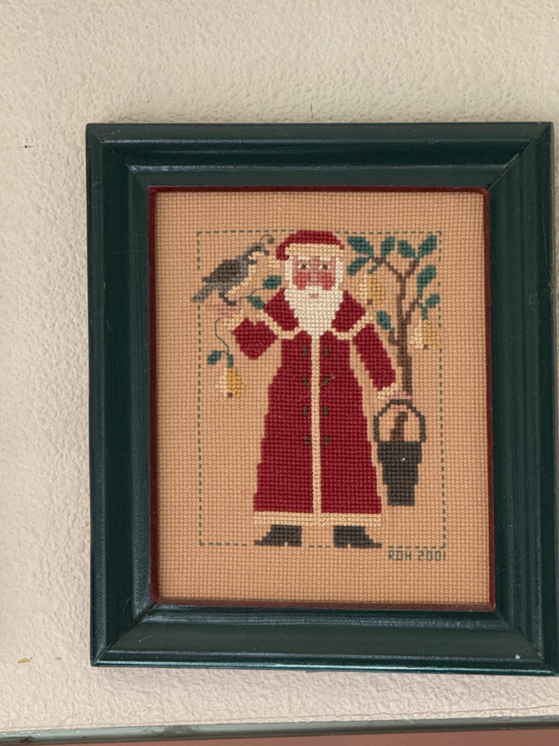 Lot # 45 - (12) Needlepoint Santas With Red and Green Frames