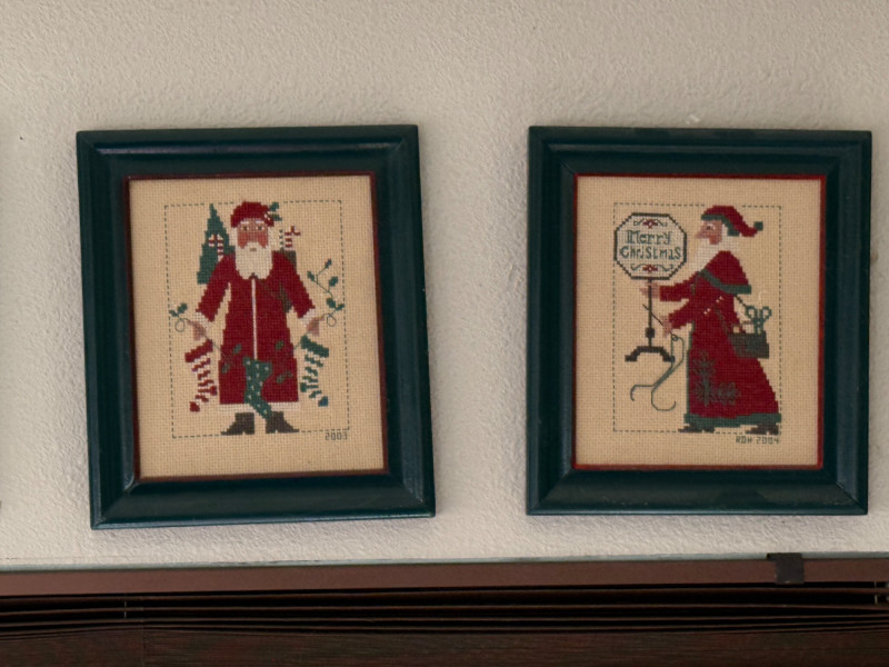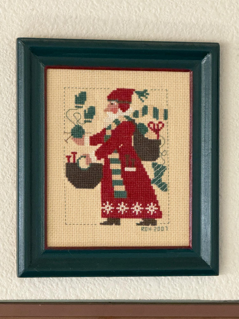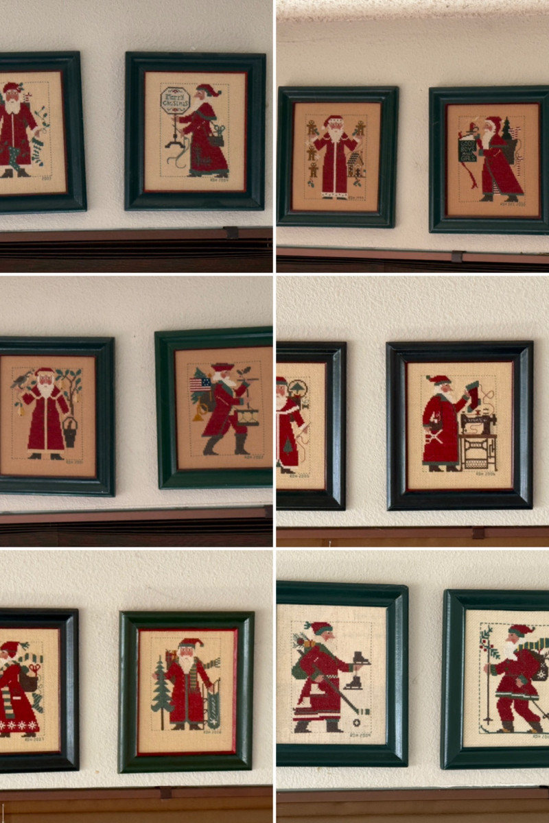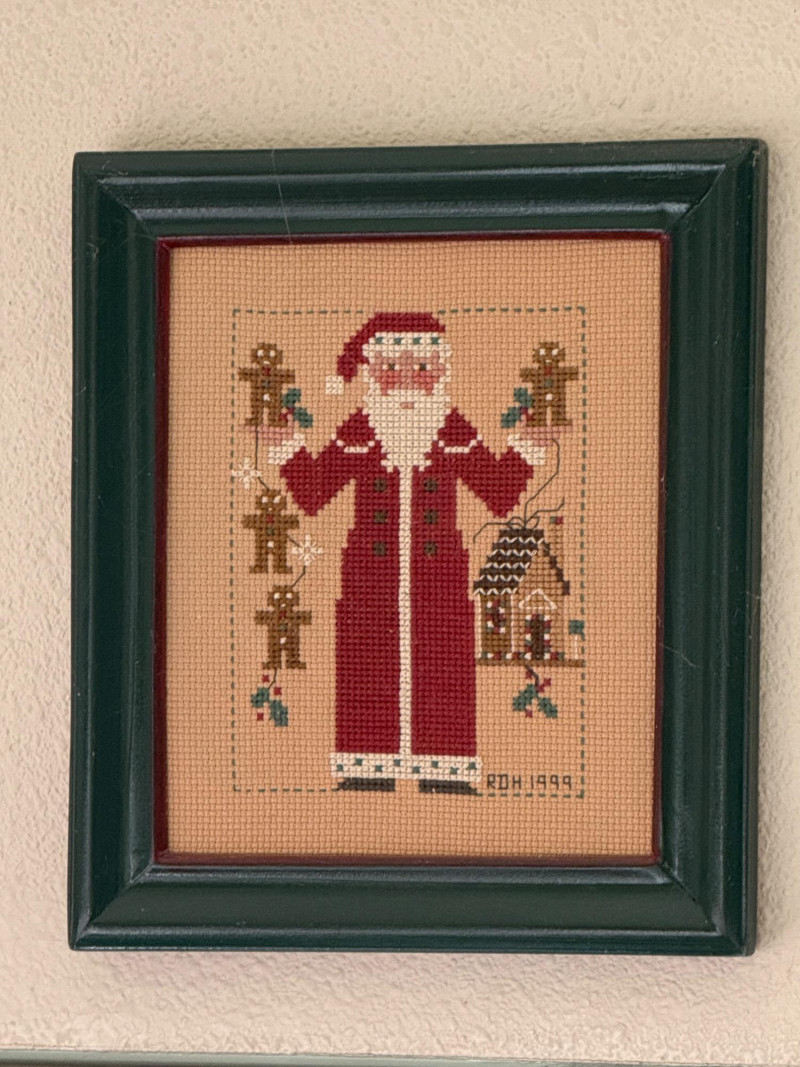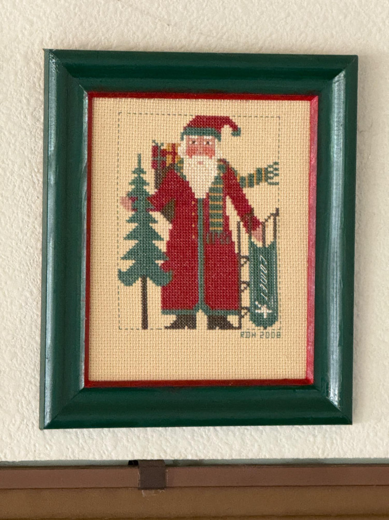 Lot # 45 - (12) Needlepoint Santas With Red and Green Frames