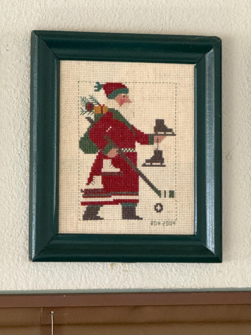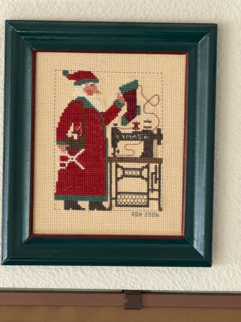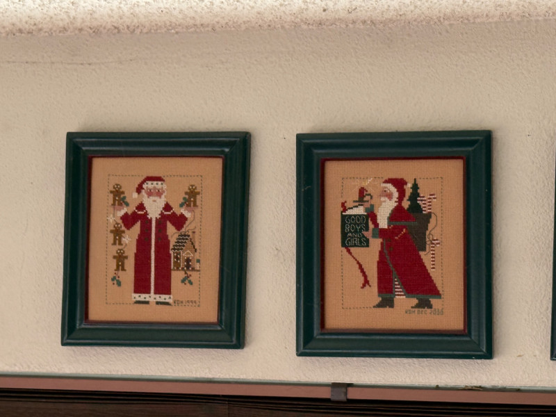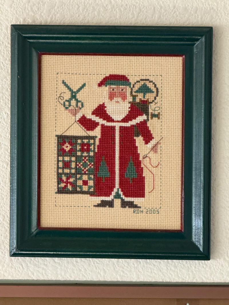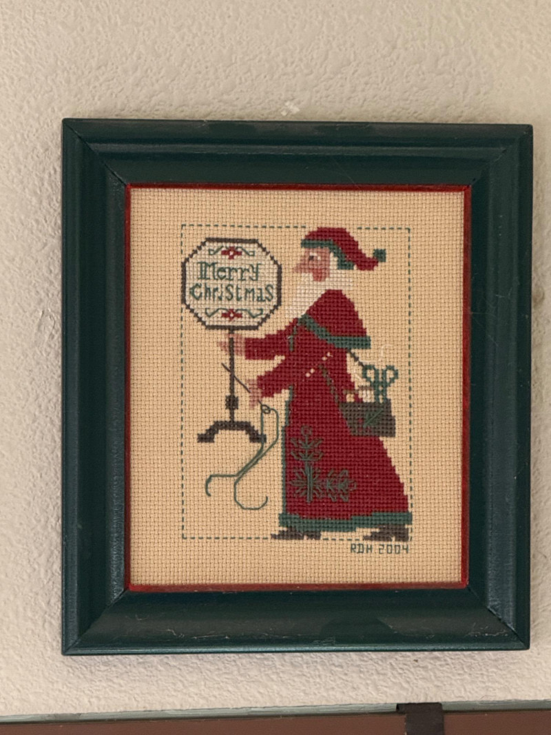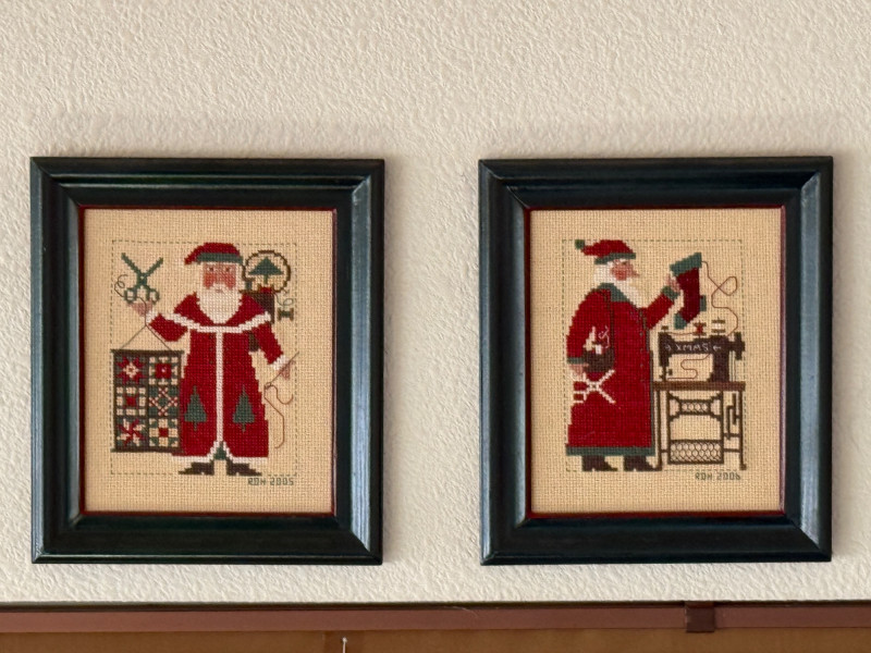 Lot # 45 - (12) Needlepoint Santas With Red and Green Frames