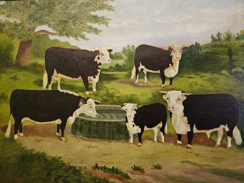 Lot # 59 - Early 20th-Century Oil Painting Of Holstein Friesian Cows In A Field