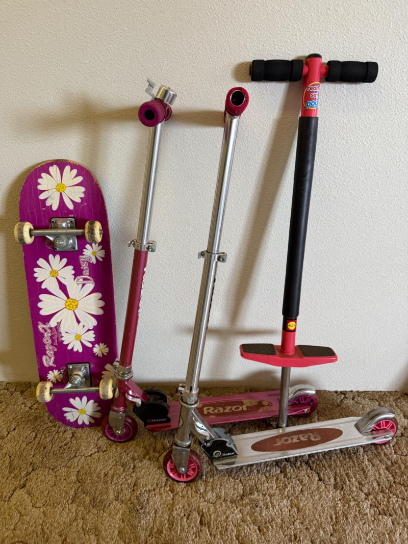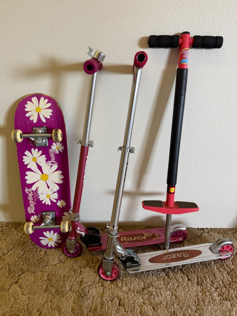 Alternative Transportation! (2) Razors - Skateboard & POGO Stick! Grips are a little “crunchy”.