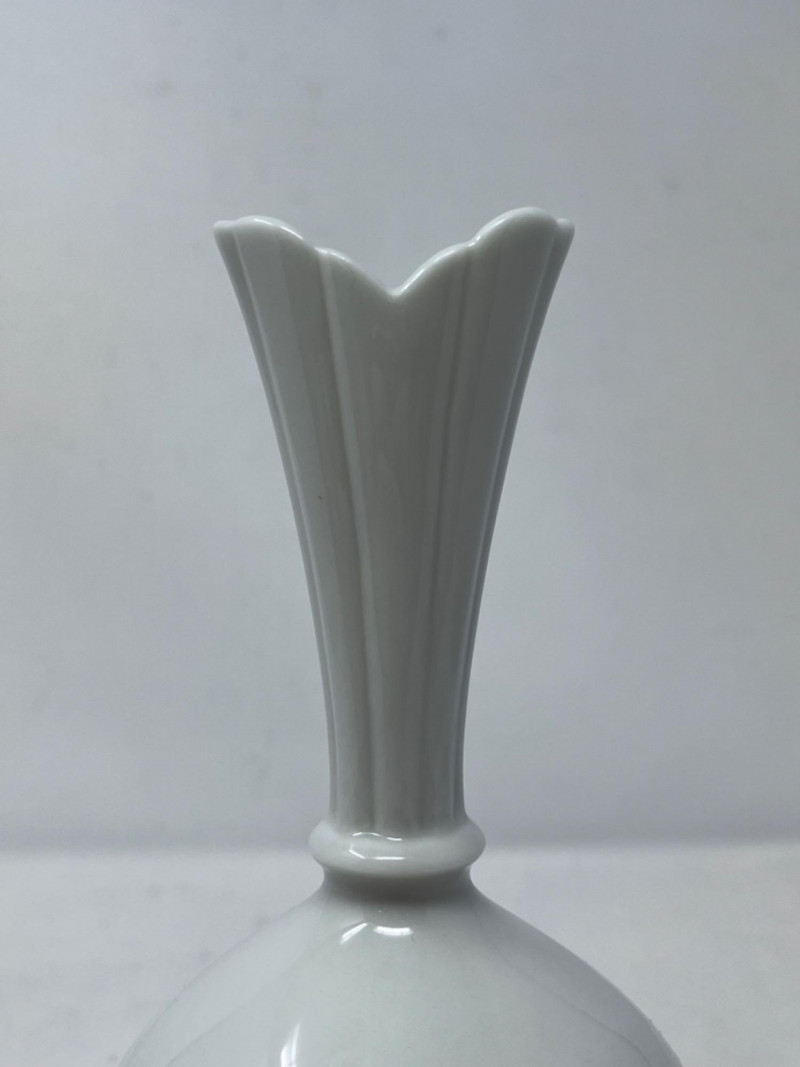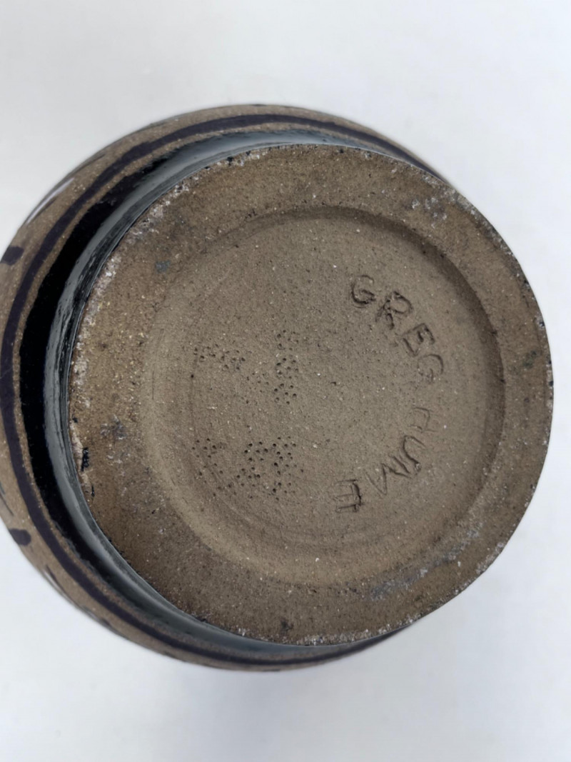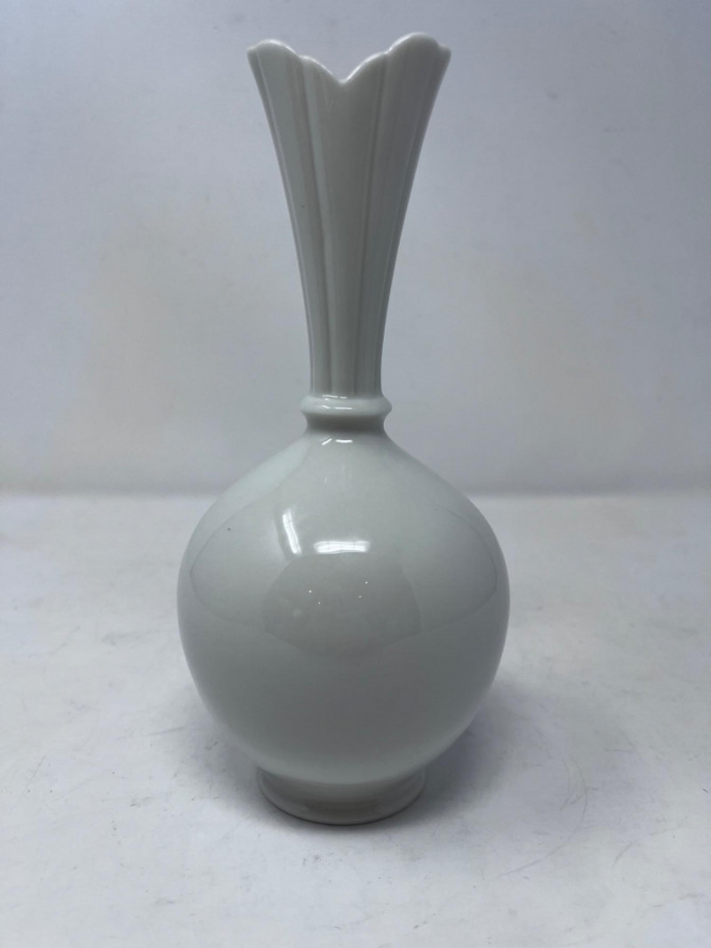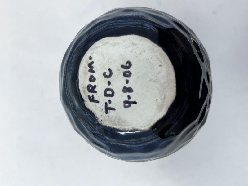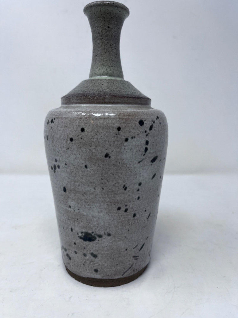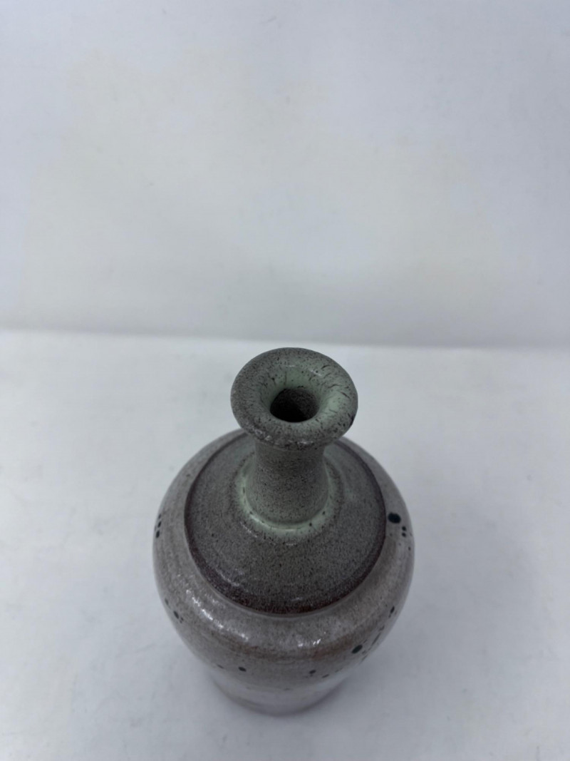 3 Handcrafted Pottery Pieces and 2 Vintage Vases Handcrafted pot 5.5”Lx7.5”W Handcrafted speckled vase 6”Lx4.5”w Late 20th century white Lenox porcelain case with bulbous shape and fluted top 8”Lx4”W Triple bubble ball vase 9”Lx2.5”W