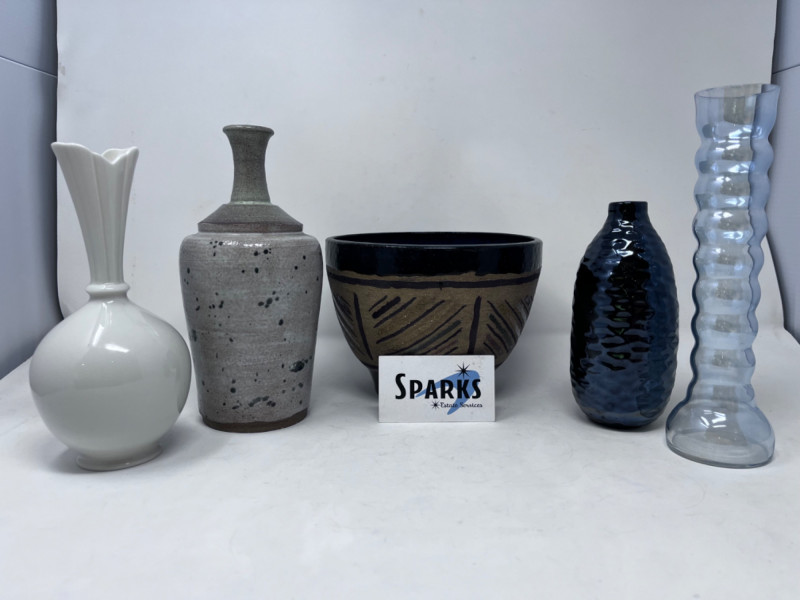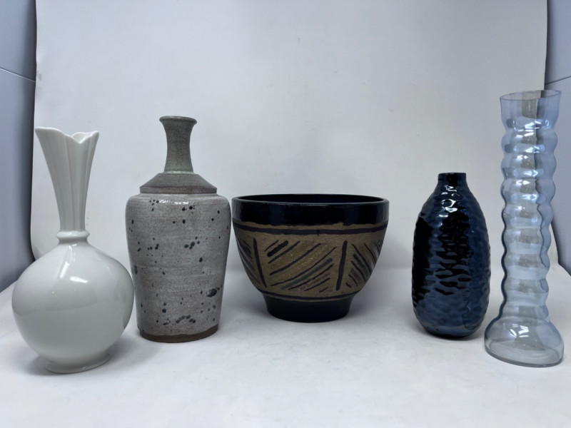 Lot # 85 - 3 Handcrafted Pottery Pieces and 2 Vintage Vases