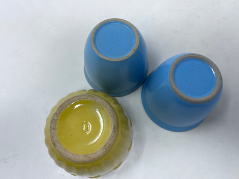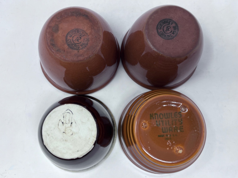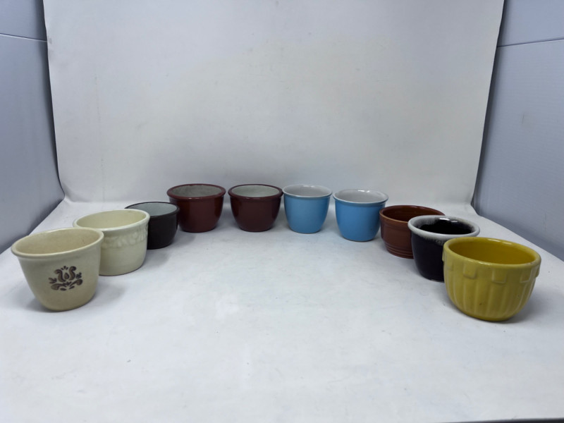 10 Solid Colored Custard Cups Variety of solid colored custard cups Some made by: Guernsey Cooking Ware, Knowles Utility Ware, etc.