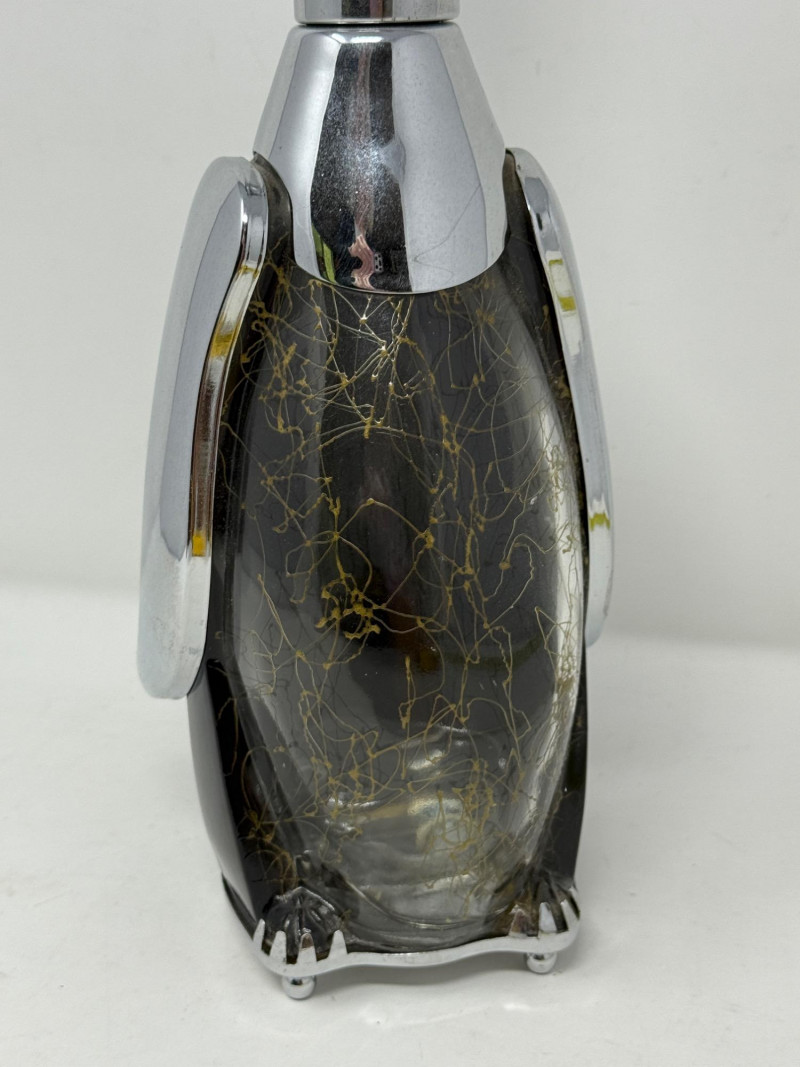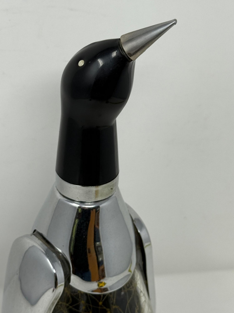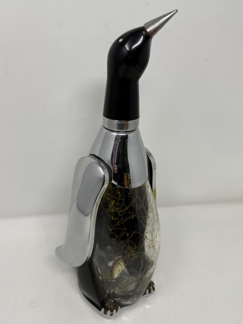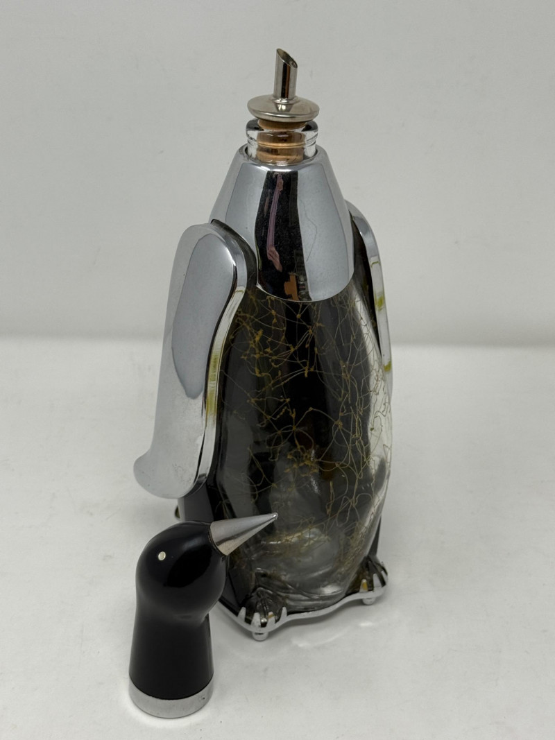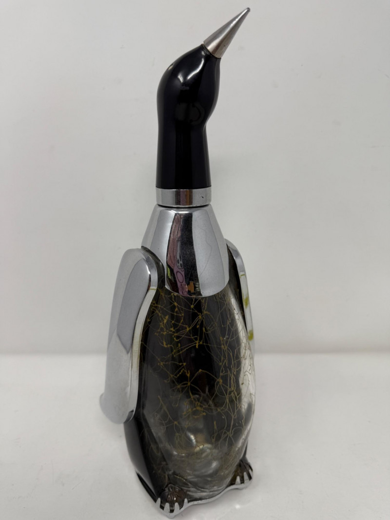 Musical Penguin Decanter made of glass and chrome.