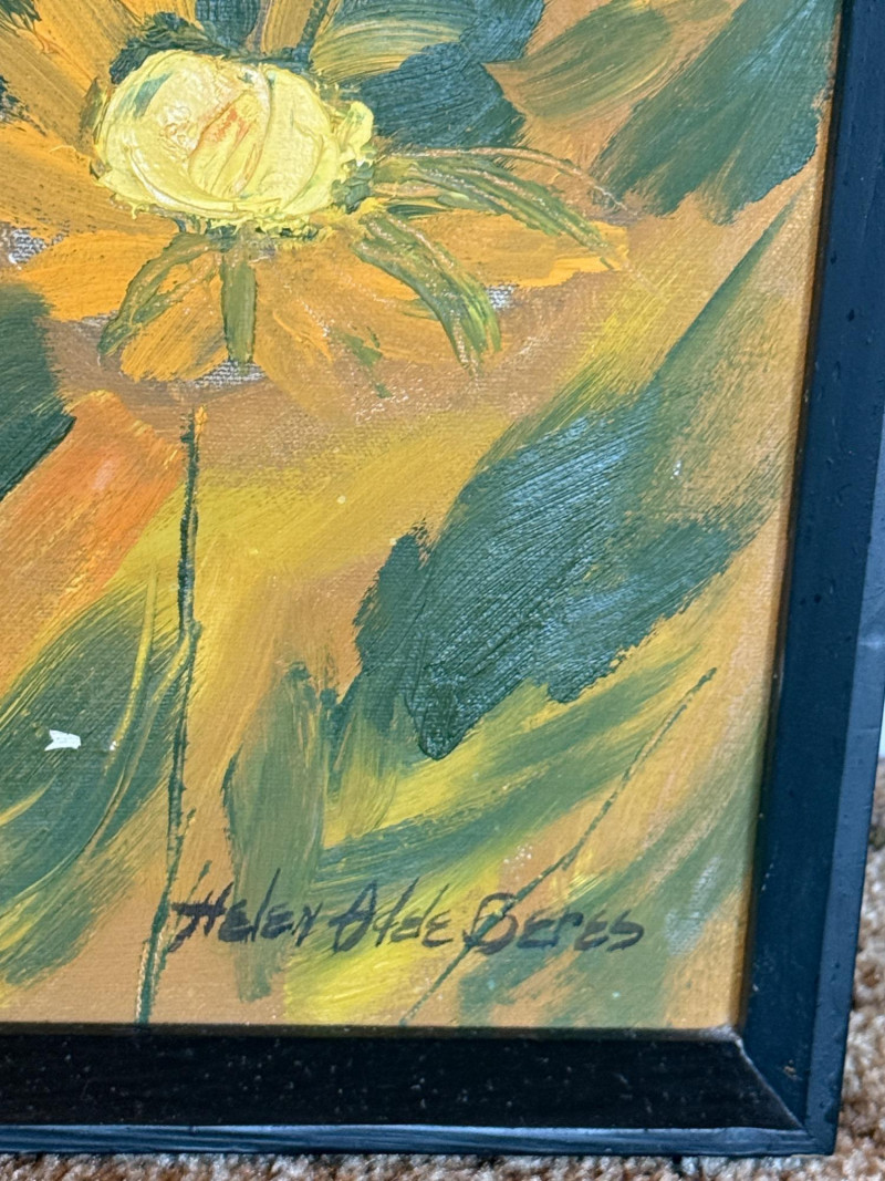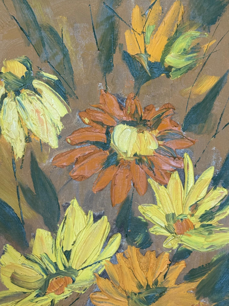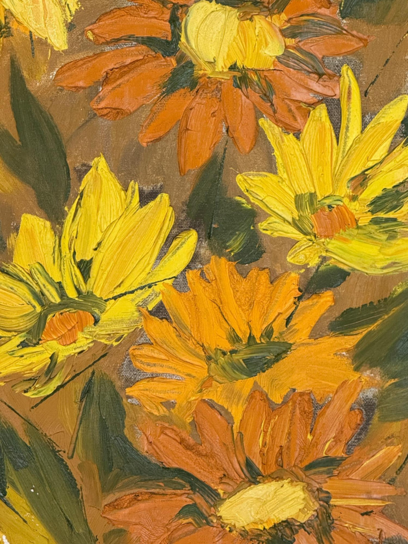 Original Oil Painting on Canvas Yellow and Orange Daisies Signed by artist Helen Adele Beres.