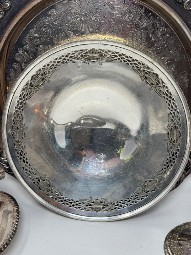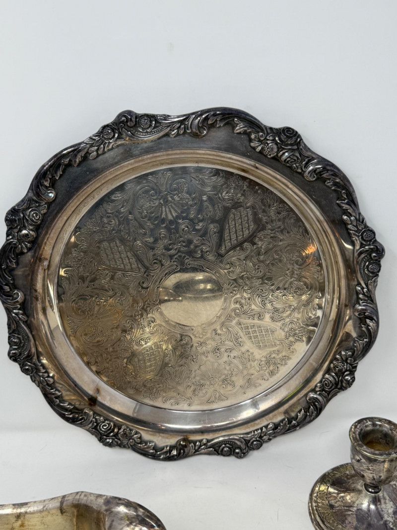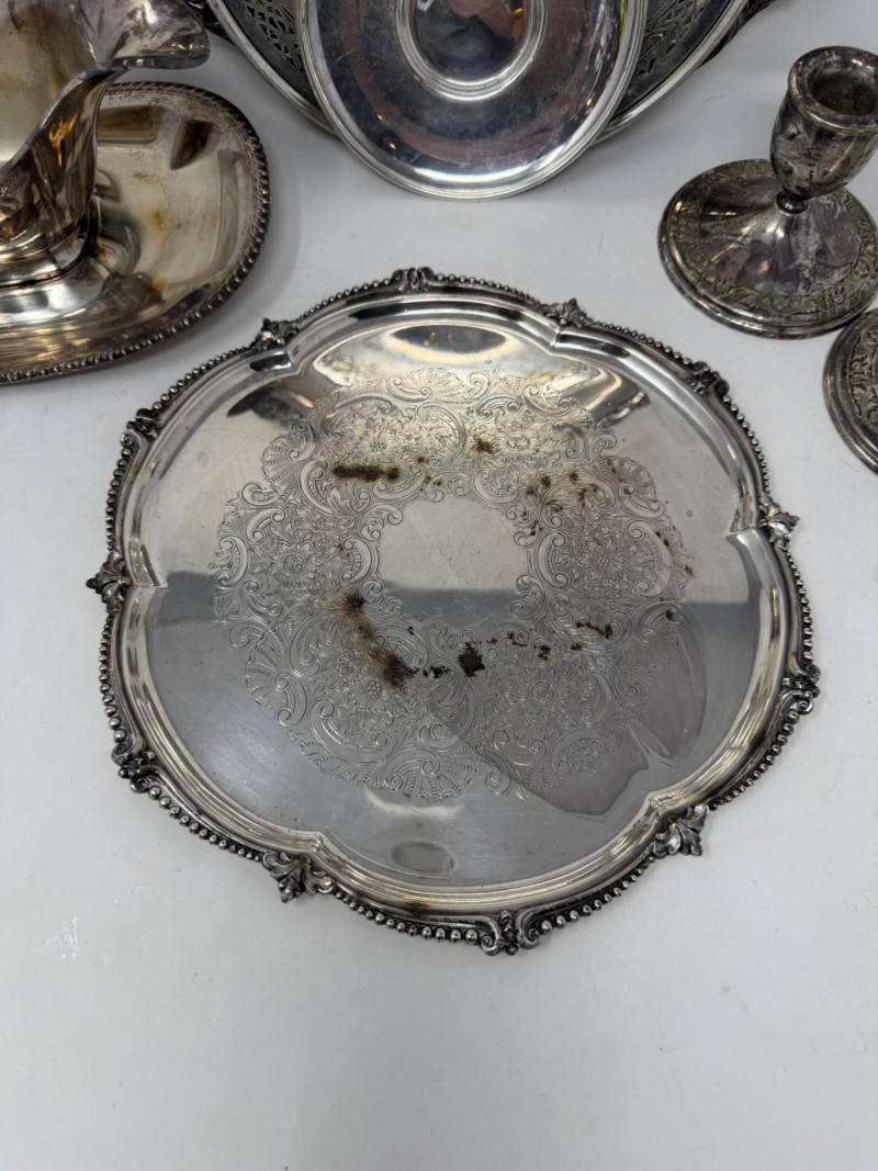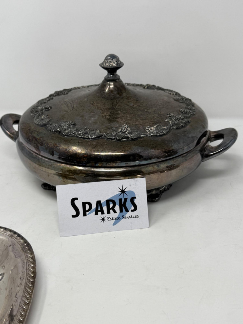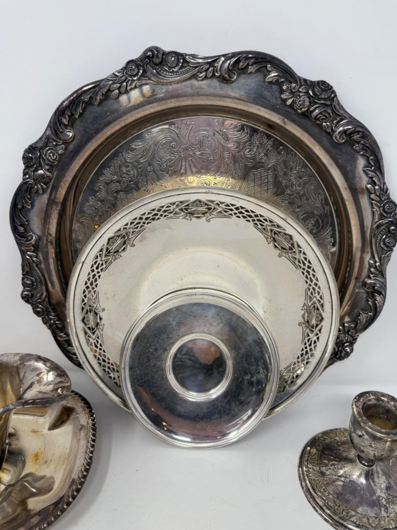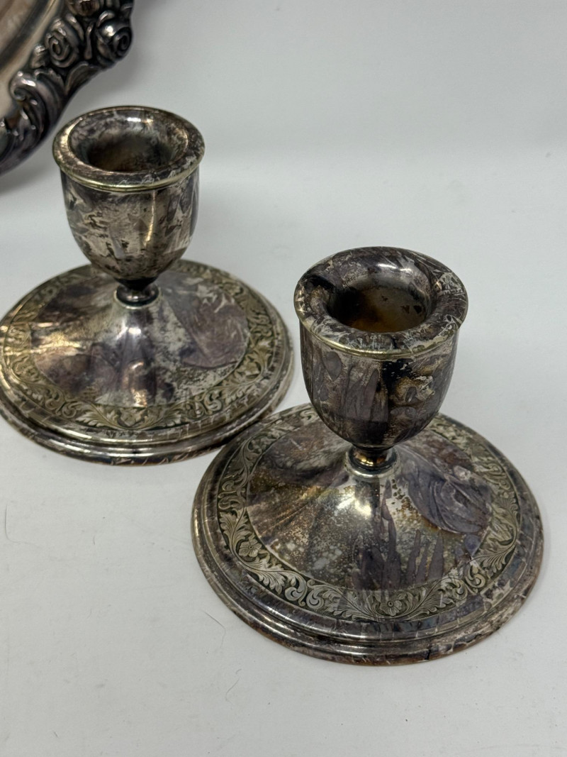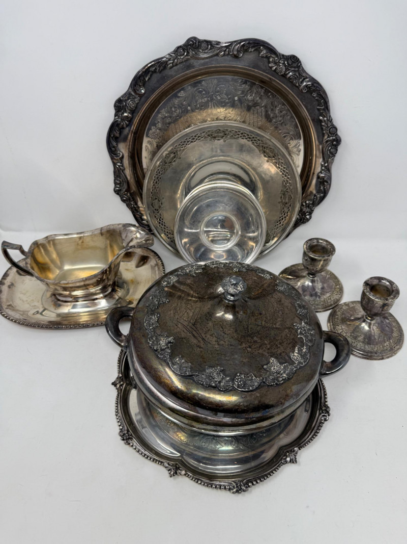 Silverplate Tureen - Gravy Boat - Candlesticks & Platters 10 pieces total.