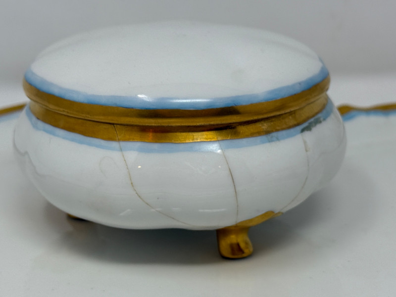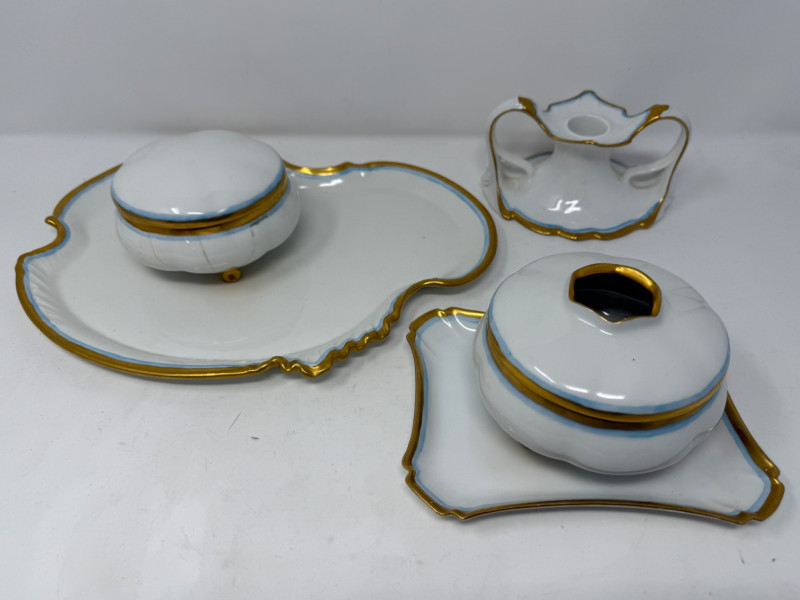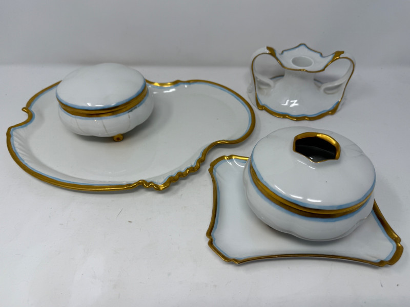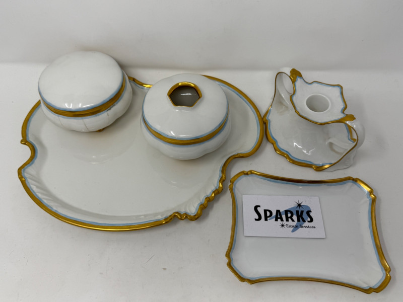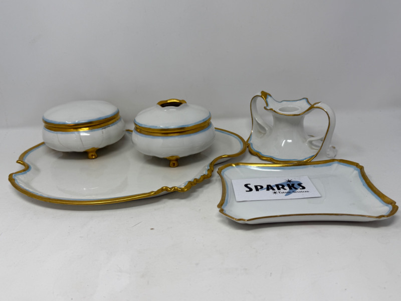 Lot # 117 - Limoges Blue and Gold Rimmed Porcelain Vanity Set