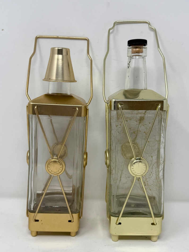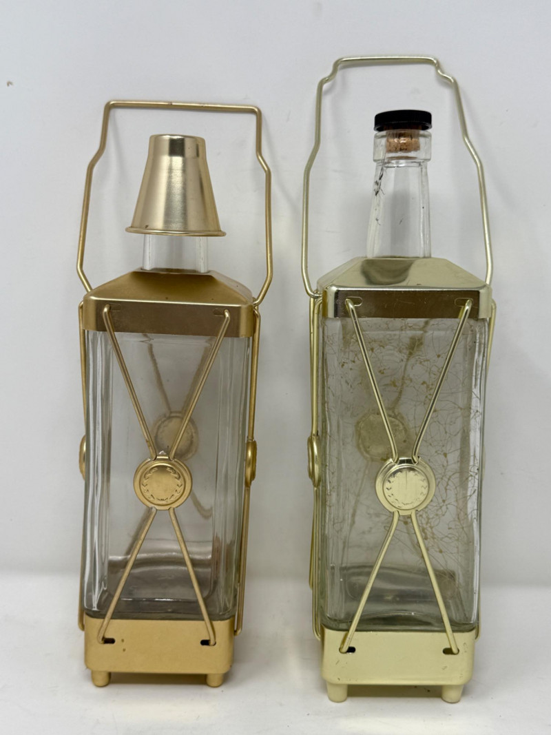 (2) Lantern Decanters Decanter with splatter glass is 3x11.75” music box does not play. A