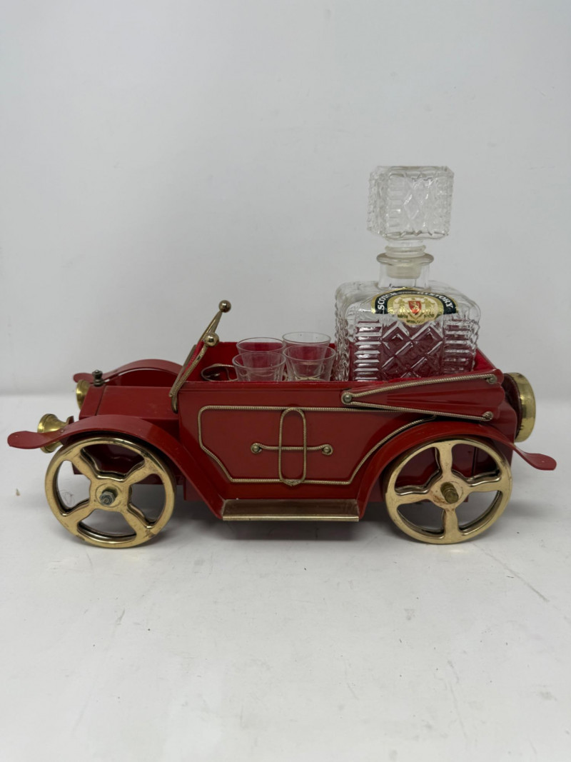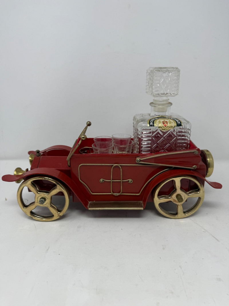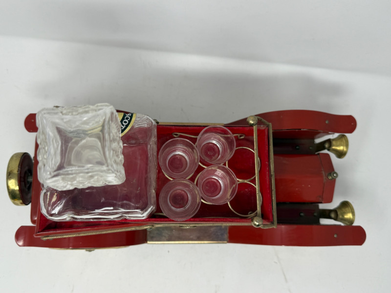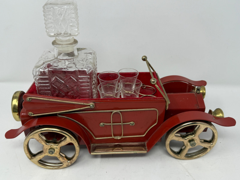 Lot # 133 - Vintage Musical Red Metal Car Decanter Set