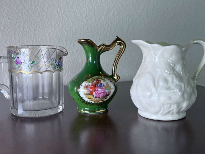 Lot # 141 - Small Pitchers, Fenton Top Hat, and Fostoria Top Hat