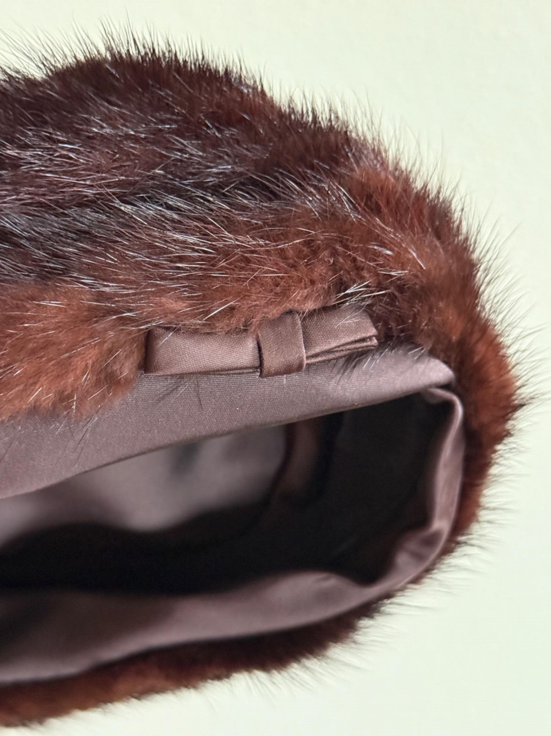 Beautiful Brown Mink Shawl & Matching Fur Lined Satin Hat