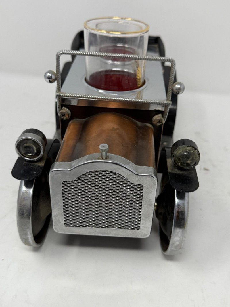 Vintage Metal Car & Glasses Set 19.5x4.5x6”
