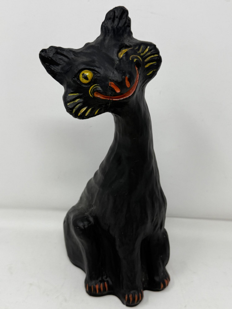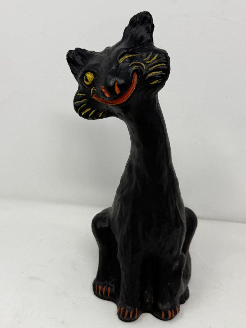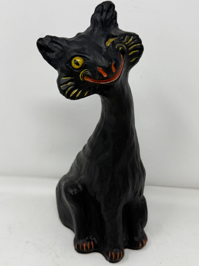 Heavy Ceramic One-Eyed Hairless Cat 5x7x11” Has been repaired.
