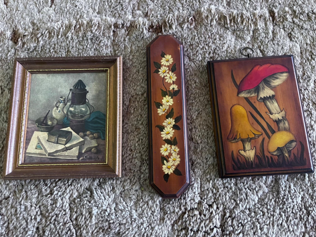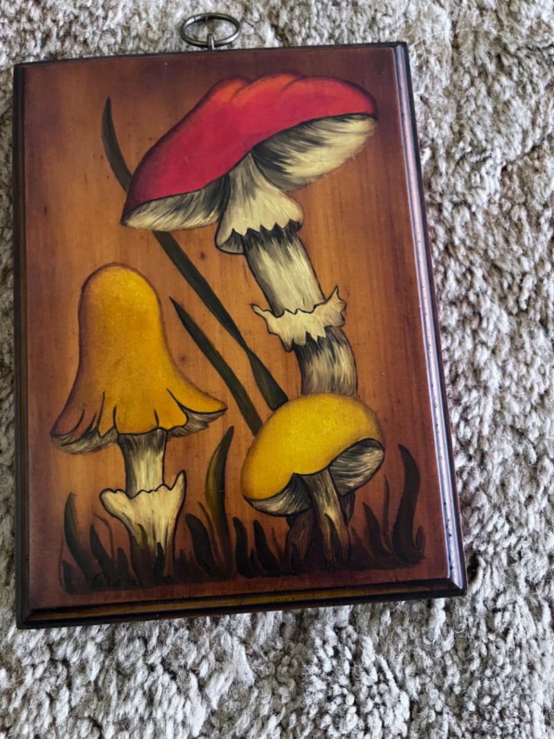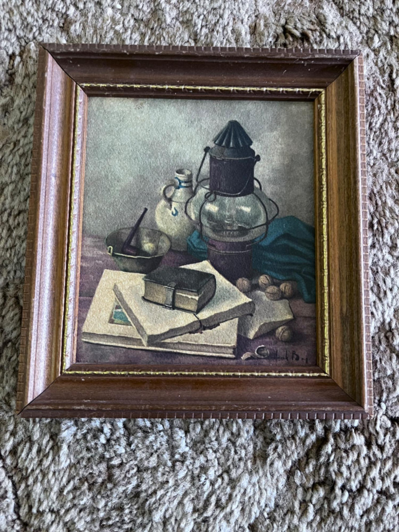 Vintage Tole Paintings and Still Life by Henk Bos Flower Tole 10.5”Lx2.5”W Mushroom Tole 7.5”Lx5.5”W Framed print Henk Bos Still Life 8”Lx7”W