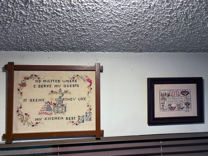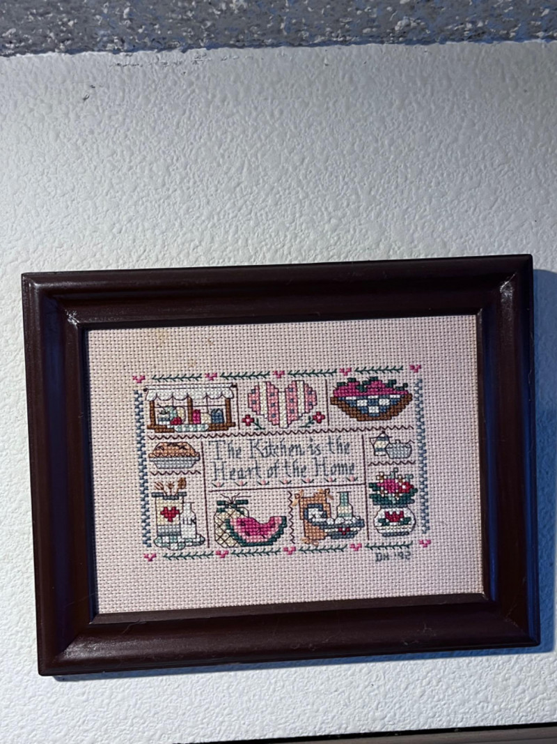 2 Kitchen Decor Needlepoint Small needlepoint in wooden frame 8”Lx10”W