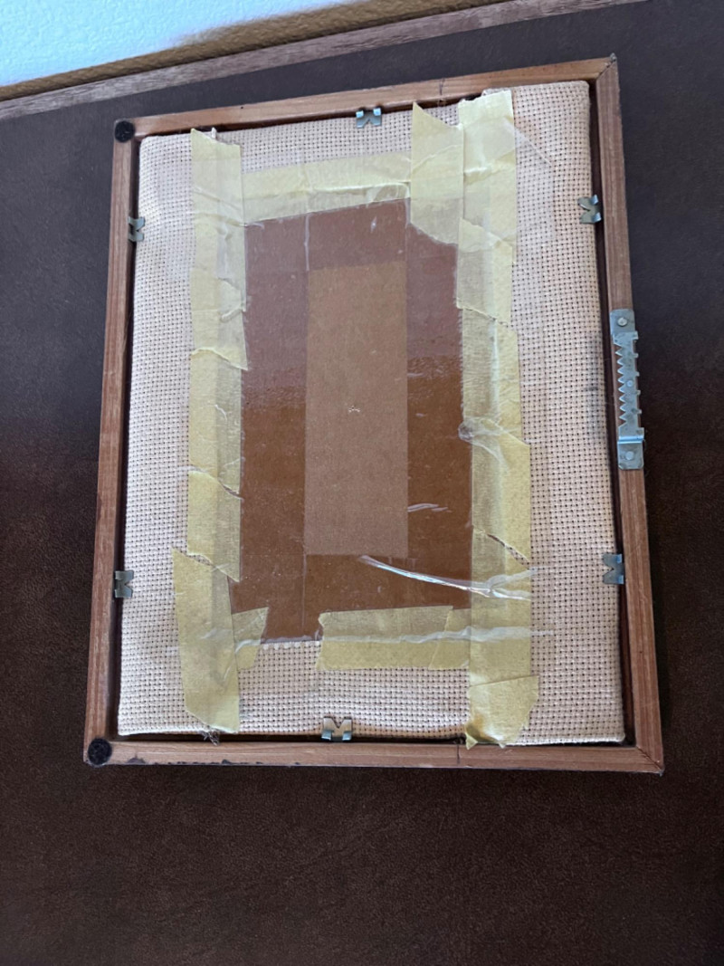Big needlepoint in wooden frame. Frame may need replaced11”Lx15”W