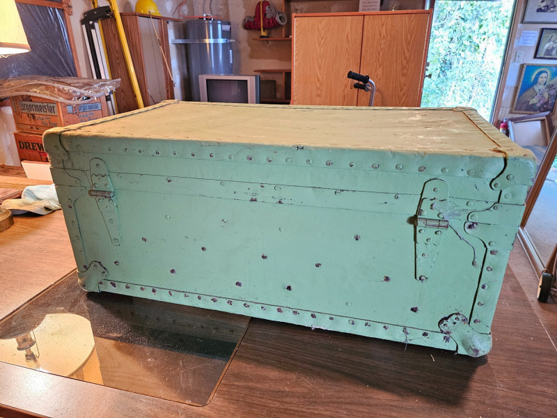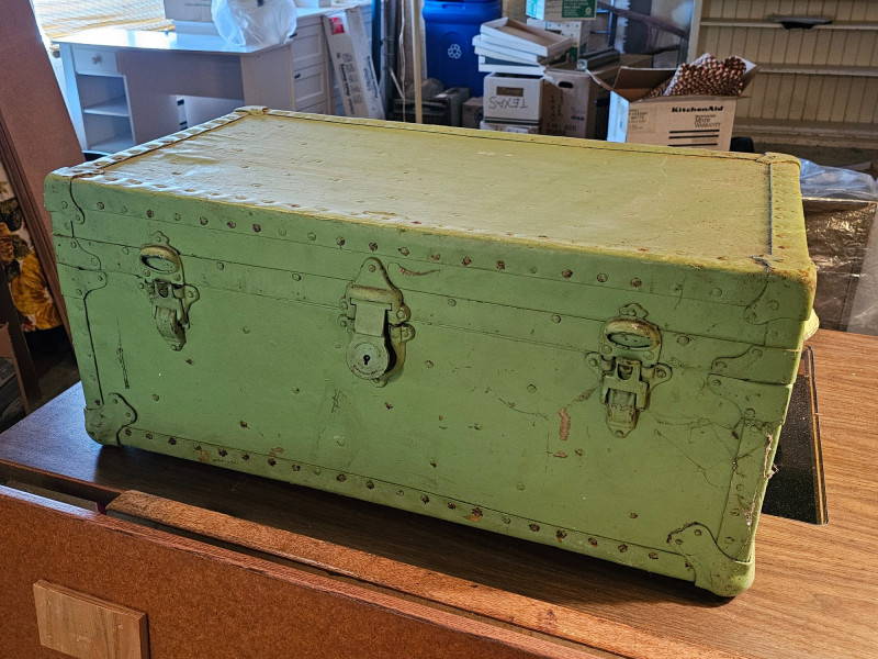 Lot # 178 - Vintage Light Green Travel Trunk/Footlocker